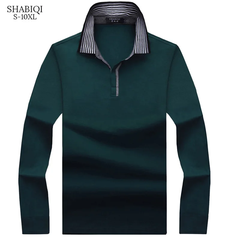 Мужская рубашка-поло, теплая, однотонная, с длинным рукавом, мерсеризованная, хлопковая, повседневная, S-10XL