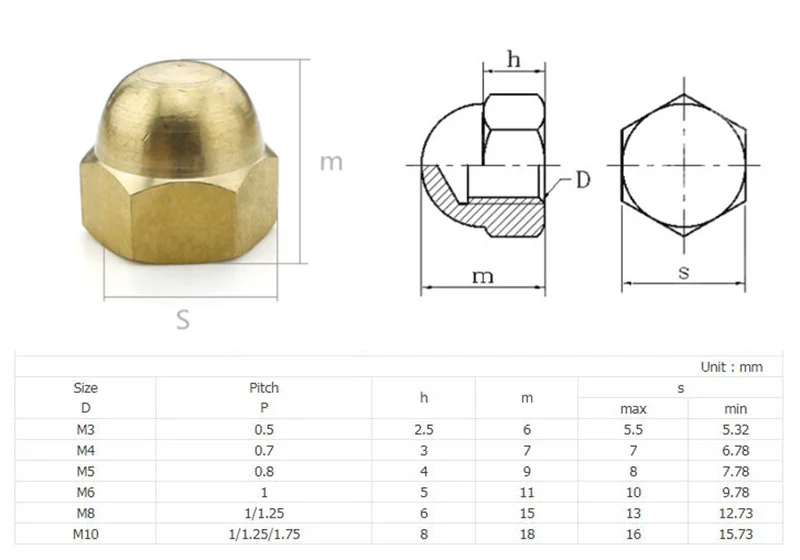 5102050 шт. DIN1587 M3 M4 M5 M6 латунная крышка шестигранные гайки декоративная купольная головка полукруглая гайка