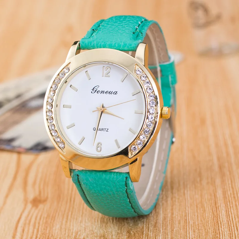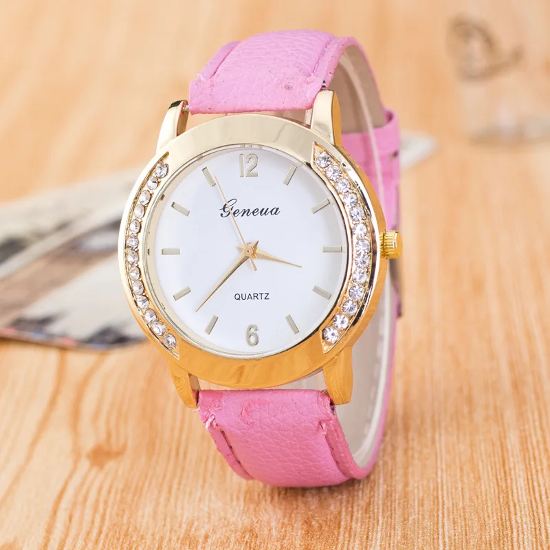 Новинка 2018, Брендовые женские часы, кварцевые часы, Женева Стразы, римские женские часы с ремешком из искусственной кожи, аналоговые часы