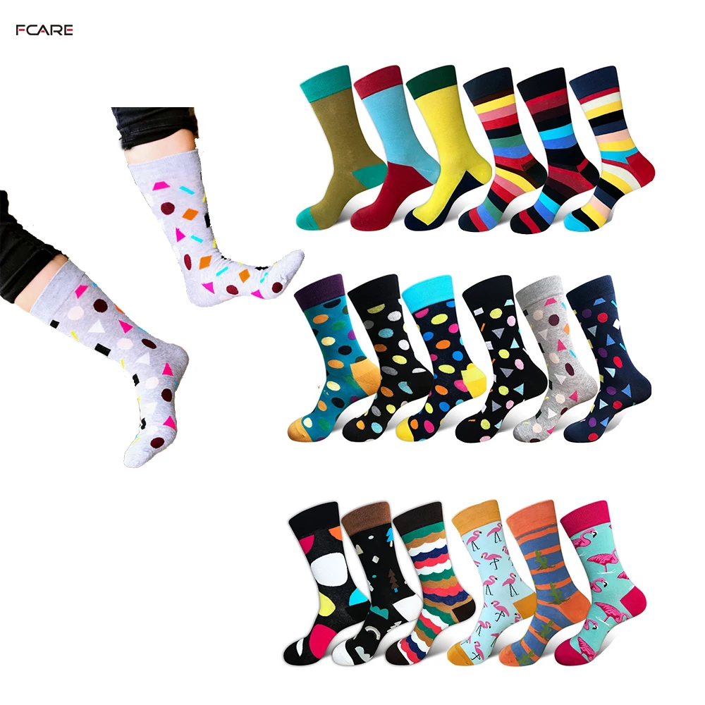 Fcare, 12 шт. = 6 пар, мужские Разноцветные носки, забавные Разноцветные носки до середины голени, Разноцветные носки, один размер