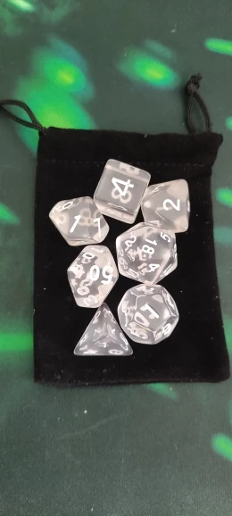 7 шт.лот, белые многогранные Прозрачные Кубики с тканевой сумкой для ролевых игр, инструменты для ролевых игр