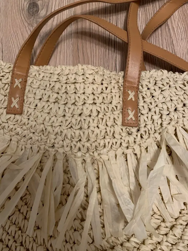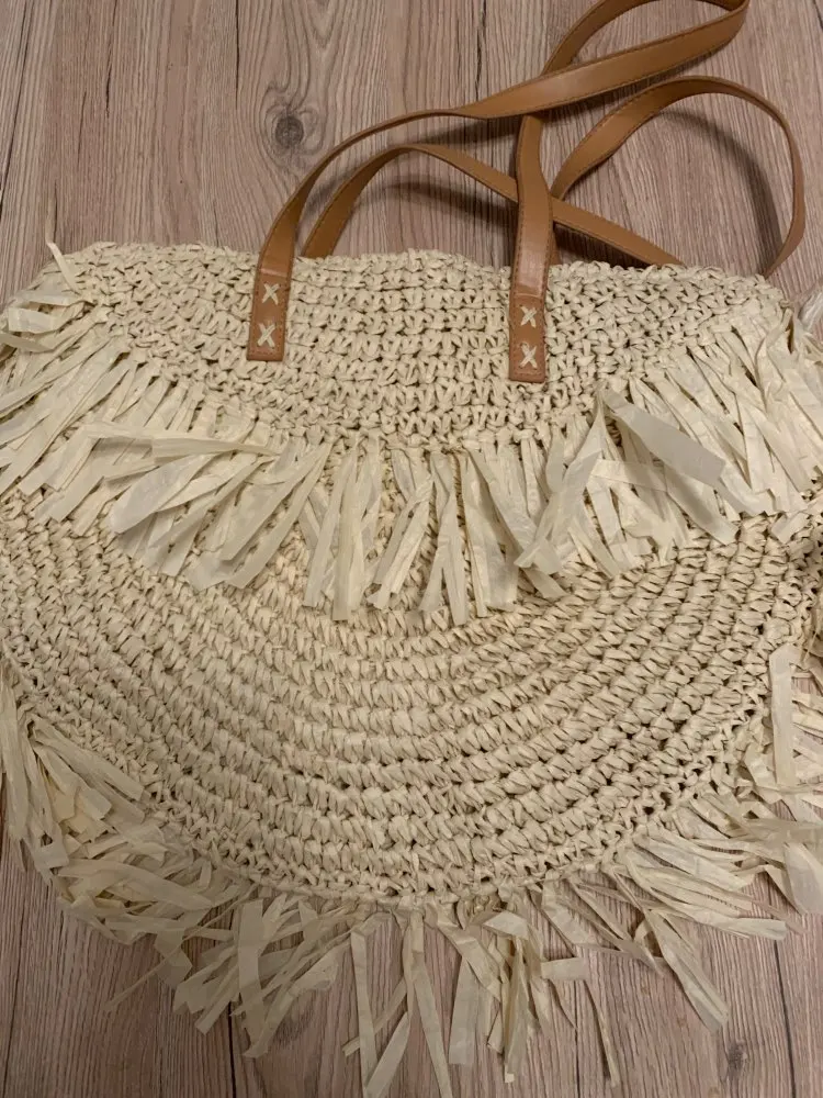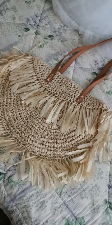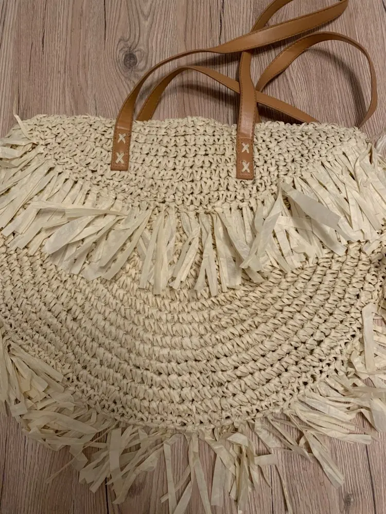 Очень стильная сумка! Понятное дело, перед использованием нужно будет отпарить бахрому, которая примялась при транспортировке. Но и так видно, что сумка смотрится очень стильно и дорого. Она достаточно вместительная для всех пляжных принадлежностей. Прекрасный летний аксессуар. Посылка пришла очень быстро - 2 недели в Киев в отделение Новой Почты. Заказом очень довольна, огромное спасибо продавцу!