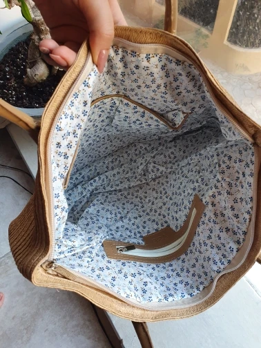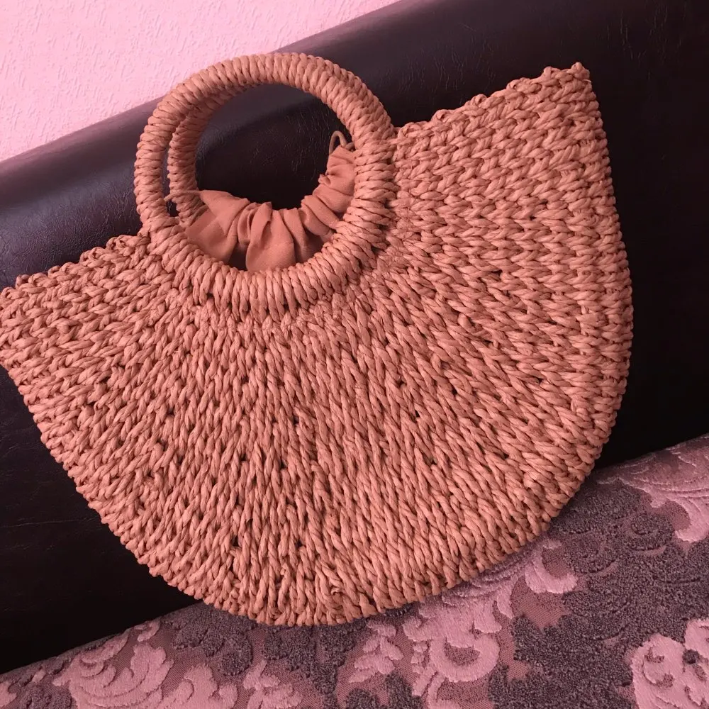 Сумка хорошая. Довольно вместительная, плетёная, светло-бежевого цвета. Внутри синтетическая подкладка, есть кармашек на молнии. Покупала для поездки на море. Довольно стильно смотрится в пляжном летнем образе. За время отпуска ничего нигде не отвалилось, не распустилось. Доставка быстрая. Смело могу рекомендовать данный товар.