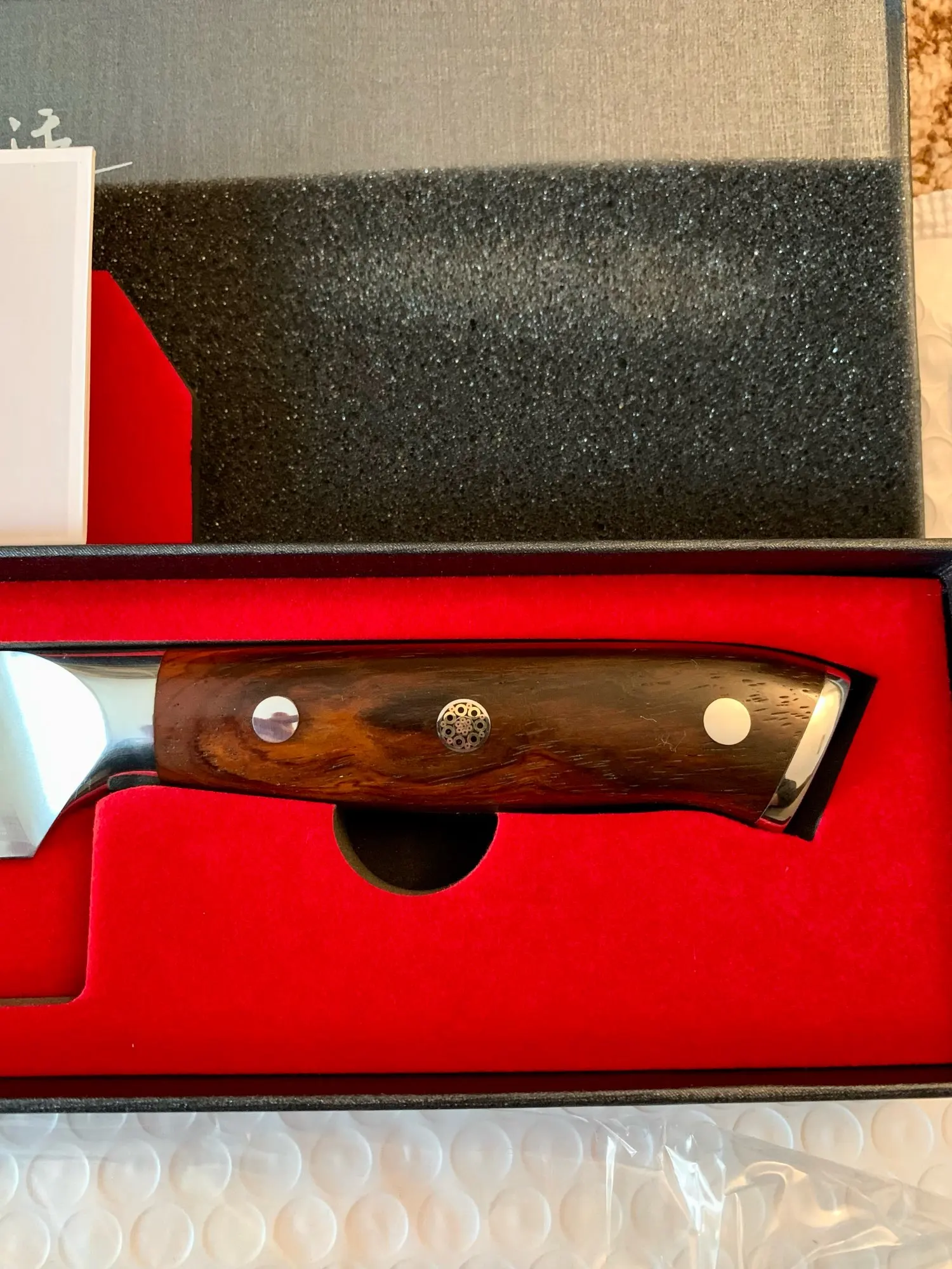 Я очень доволен этим ножом он очень острый и качество изготовления на высоте . Продавец хороший отправил ножи на следующий день положил подарок брусок на три тысячи грид для заточки , доставка заняла три недели , все хорошо упаковано продавцу пять звёзд за это .