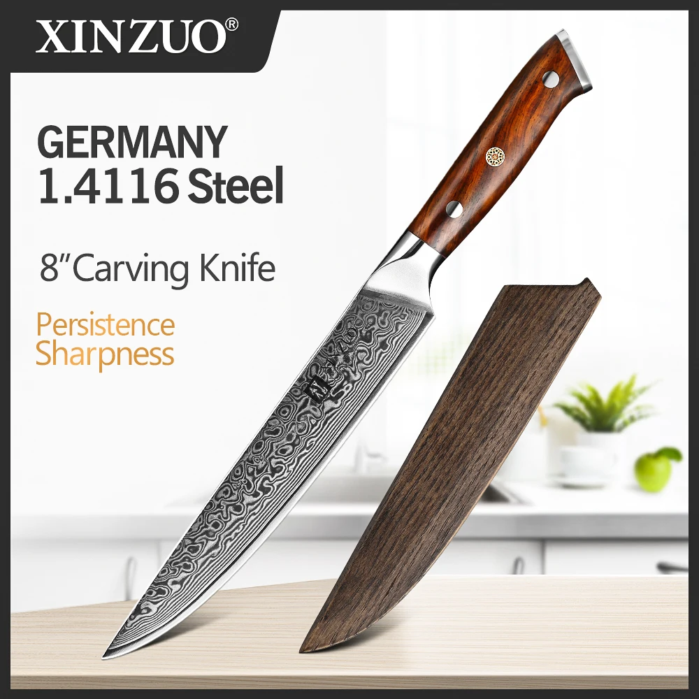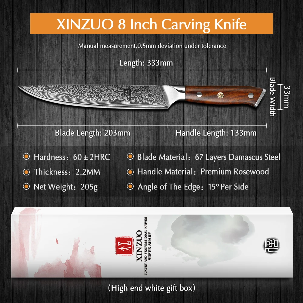 Нож Мясницкий XINZUO VG10, японские кухонные приборы для мяса 8 дюймов, рукоятка из палисандра, дамасское лезвие, подходит для нарезки мяса, барбекю