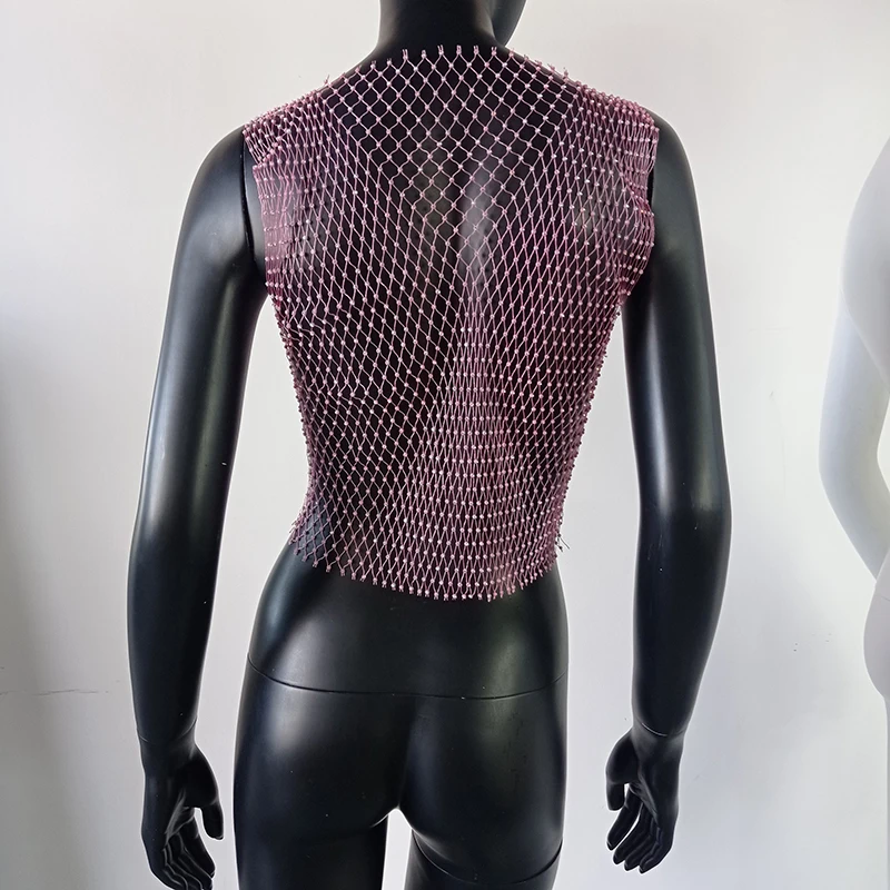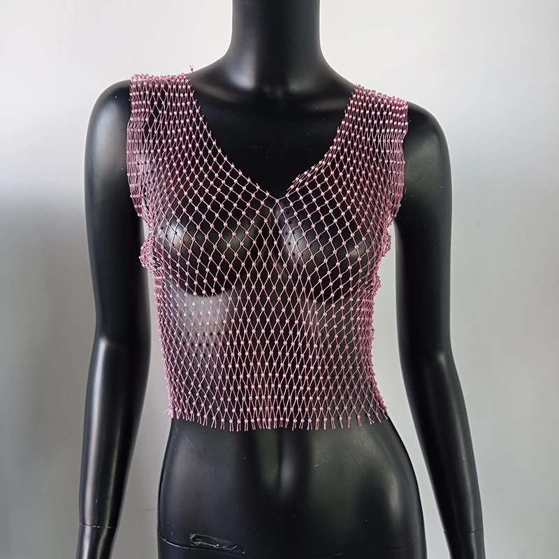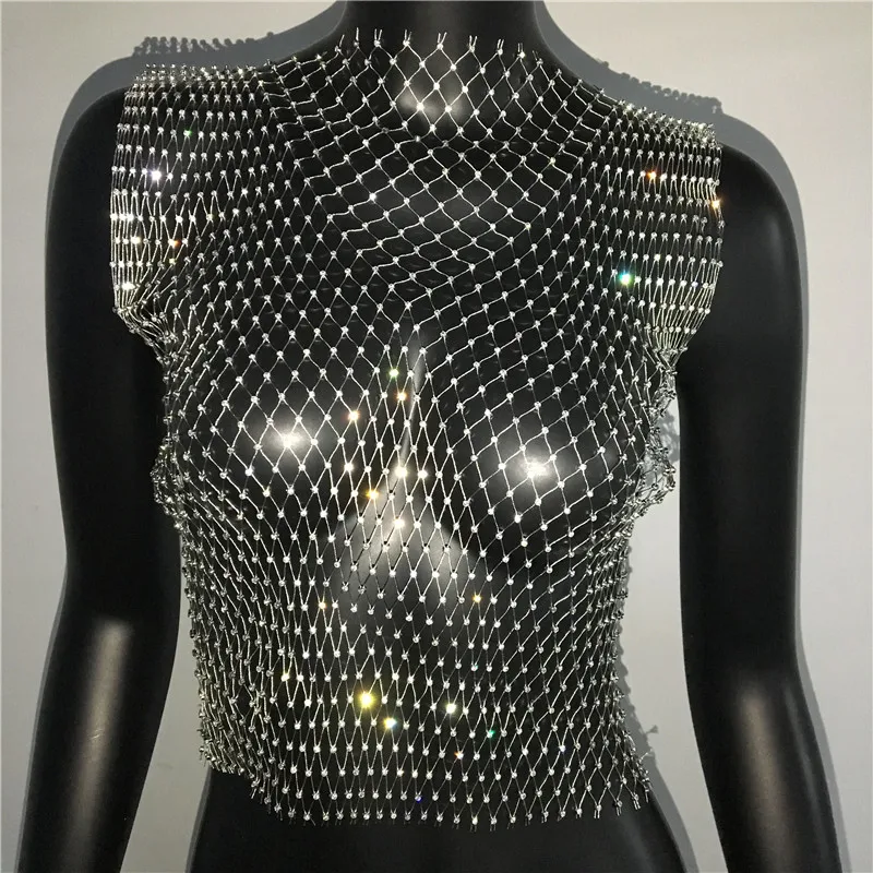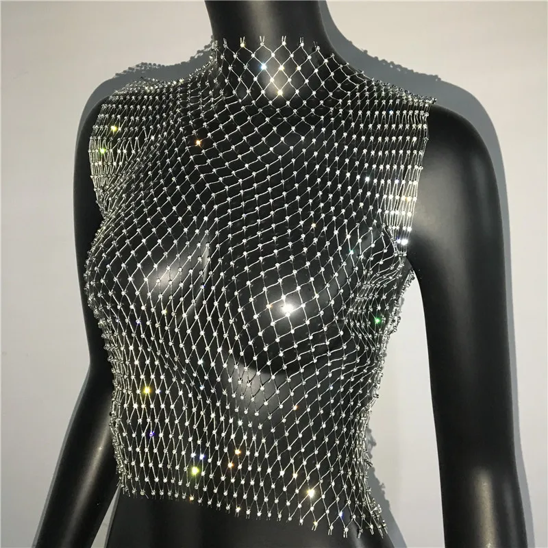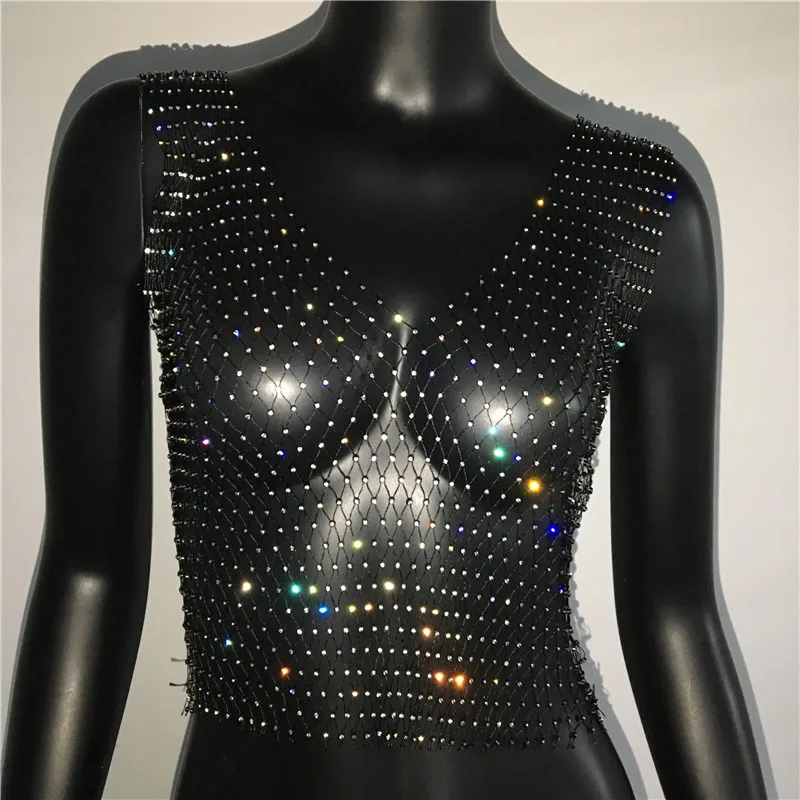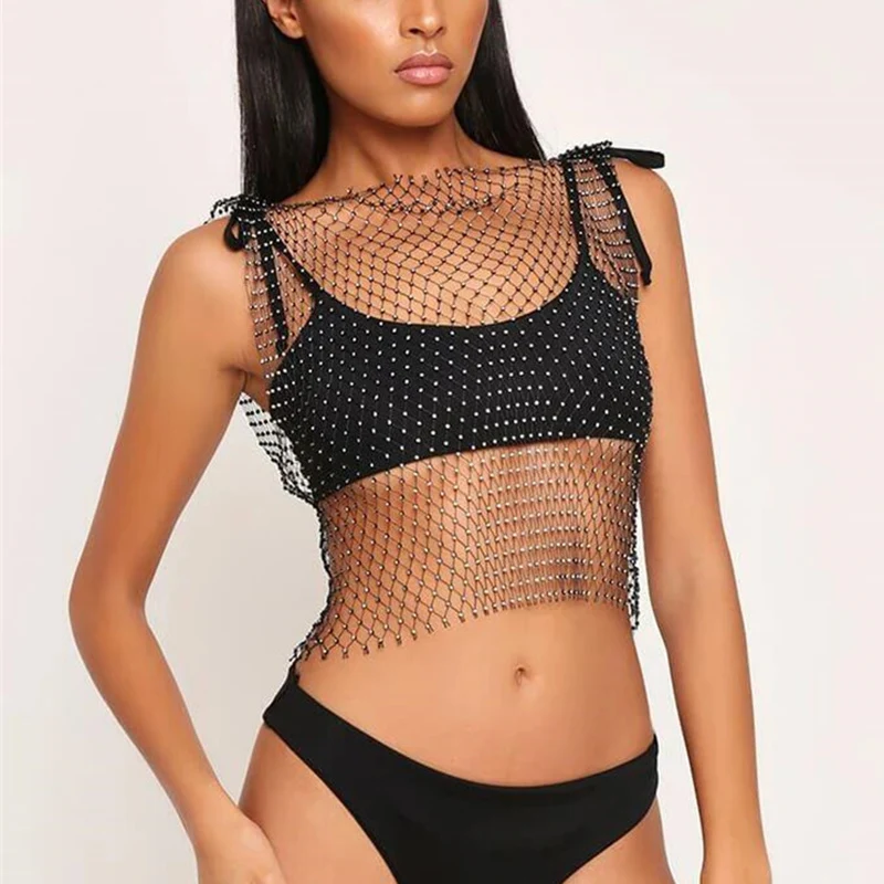 Сексуальная сетчатая Женская майка с бриллиантами FestivalQueen, летняя накидка на бикини, прозрачная, сетка со стразами вечерние, клубный кроп-топ