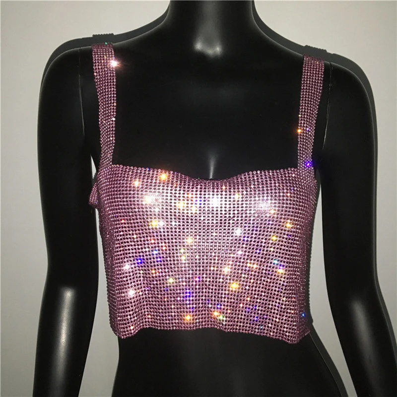Женский укороченный топ Bling Стразы, модный однотонный топ на бретелях с открытой спиной и блестками, 2022
