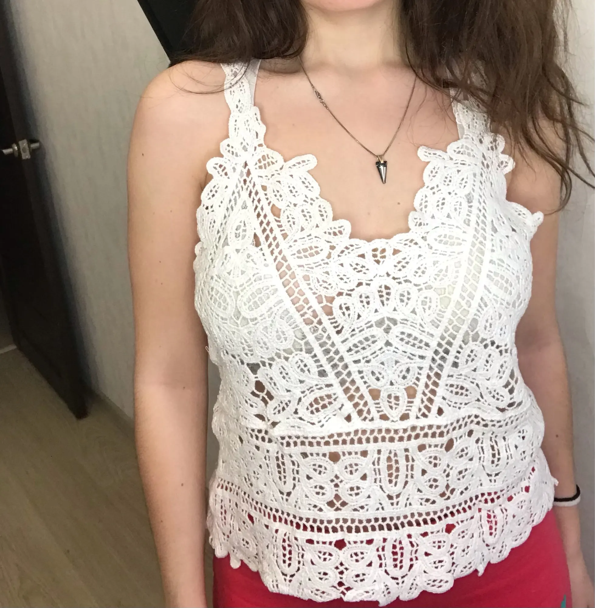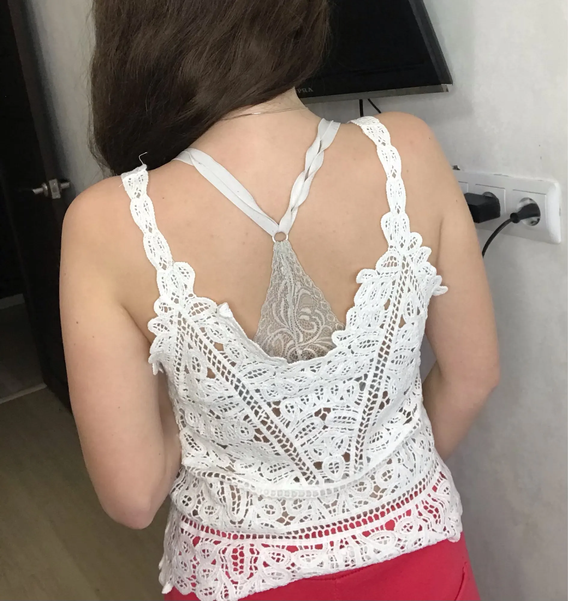 Как на фото, очень мягкий. Топ просвечивается, поэтому подумайте о том, чтобы носить его с соской или маленькой бралеттой, если вы не носите его на пляже.