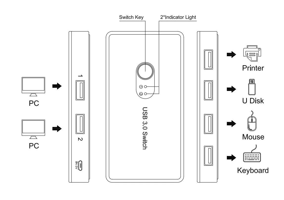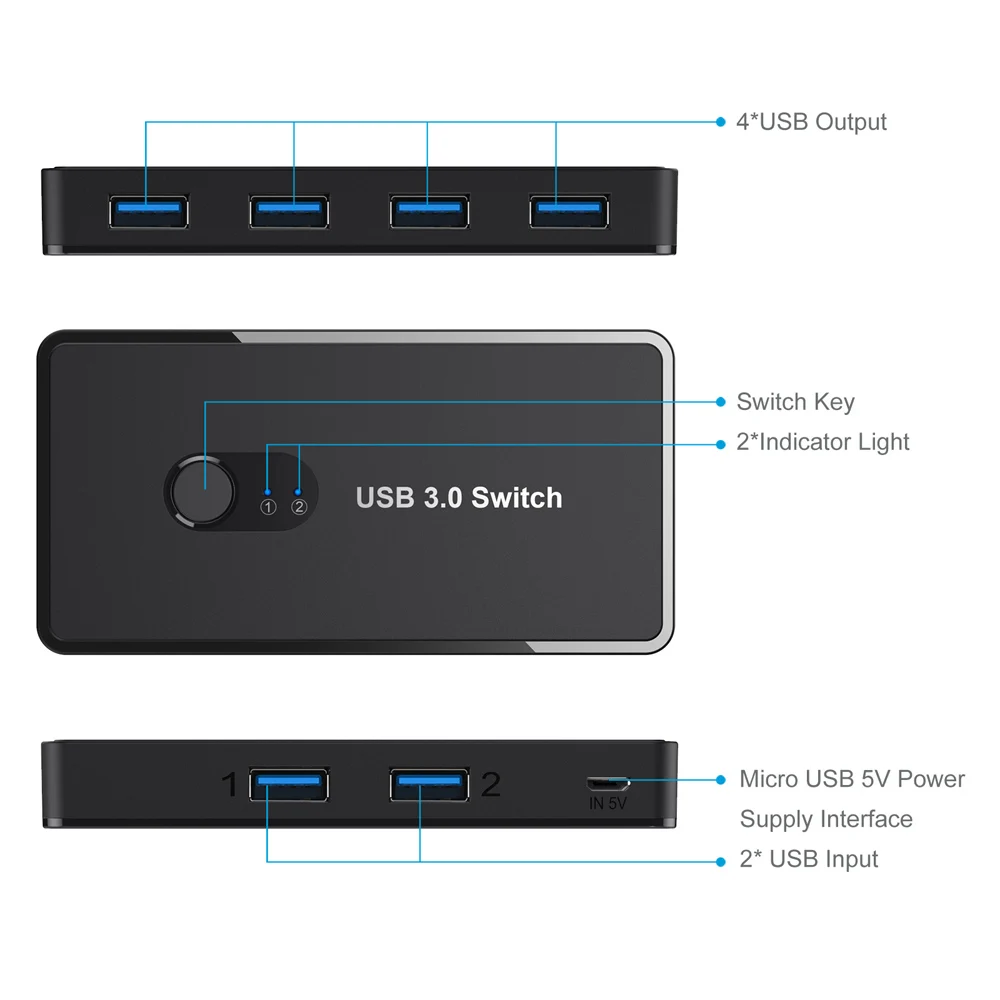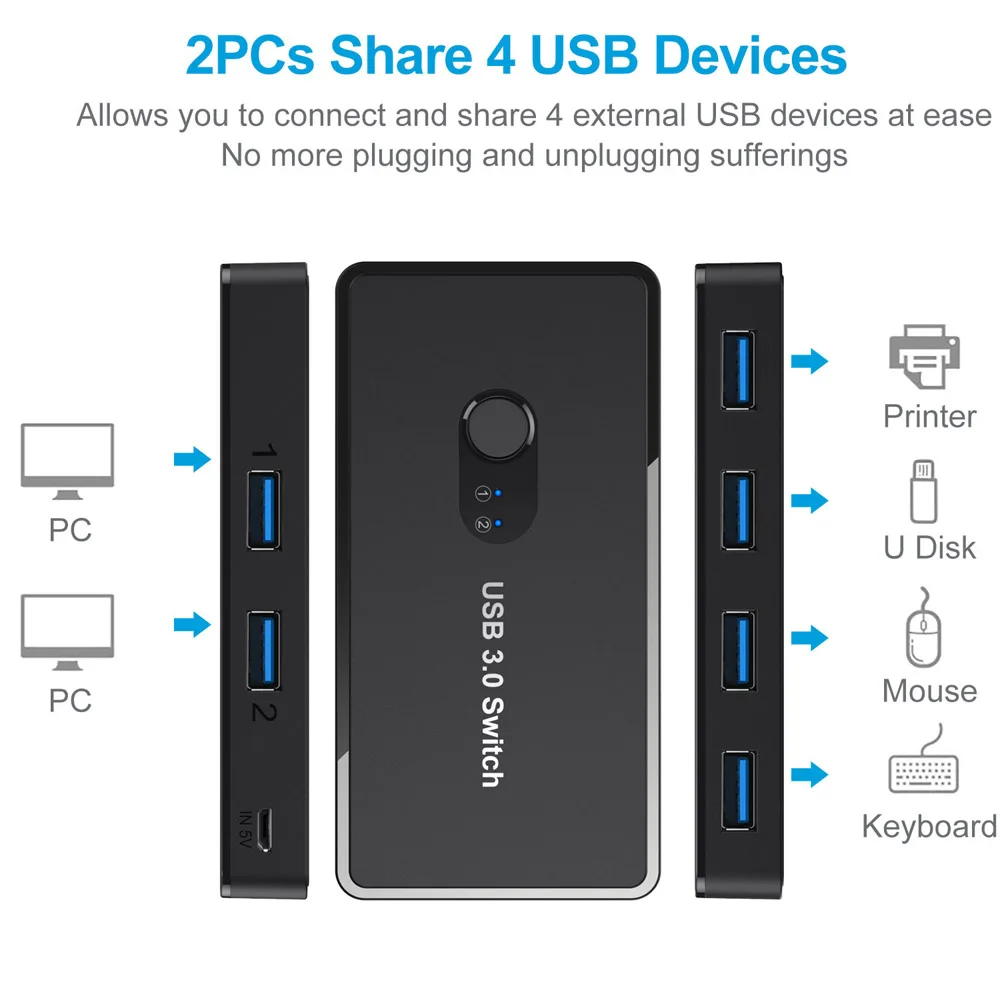 KVM переключатель USB 3,0 переключатель для Windows 10 ПК клавиатура мышь принтер 2 шт. совместное использование 4 устройств USB переключатель