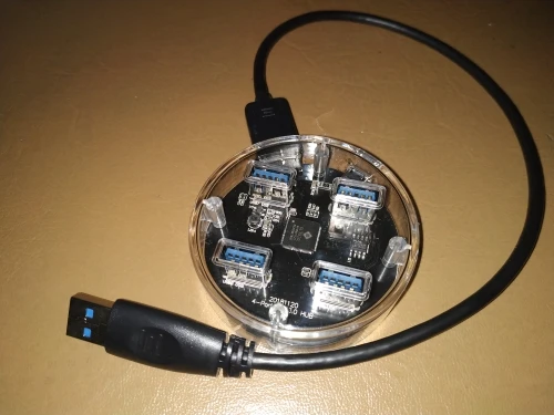 Хорошо вмещает четыре устройства. Разъемы достаточно разделены, чтобы сделать пространство для большего размера USB-накопителя. Производительность USB3 нормальная, несколько около 300 МБ/с, если ничего больше не подключено. Чип GL3520.