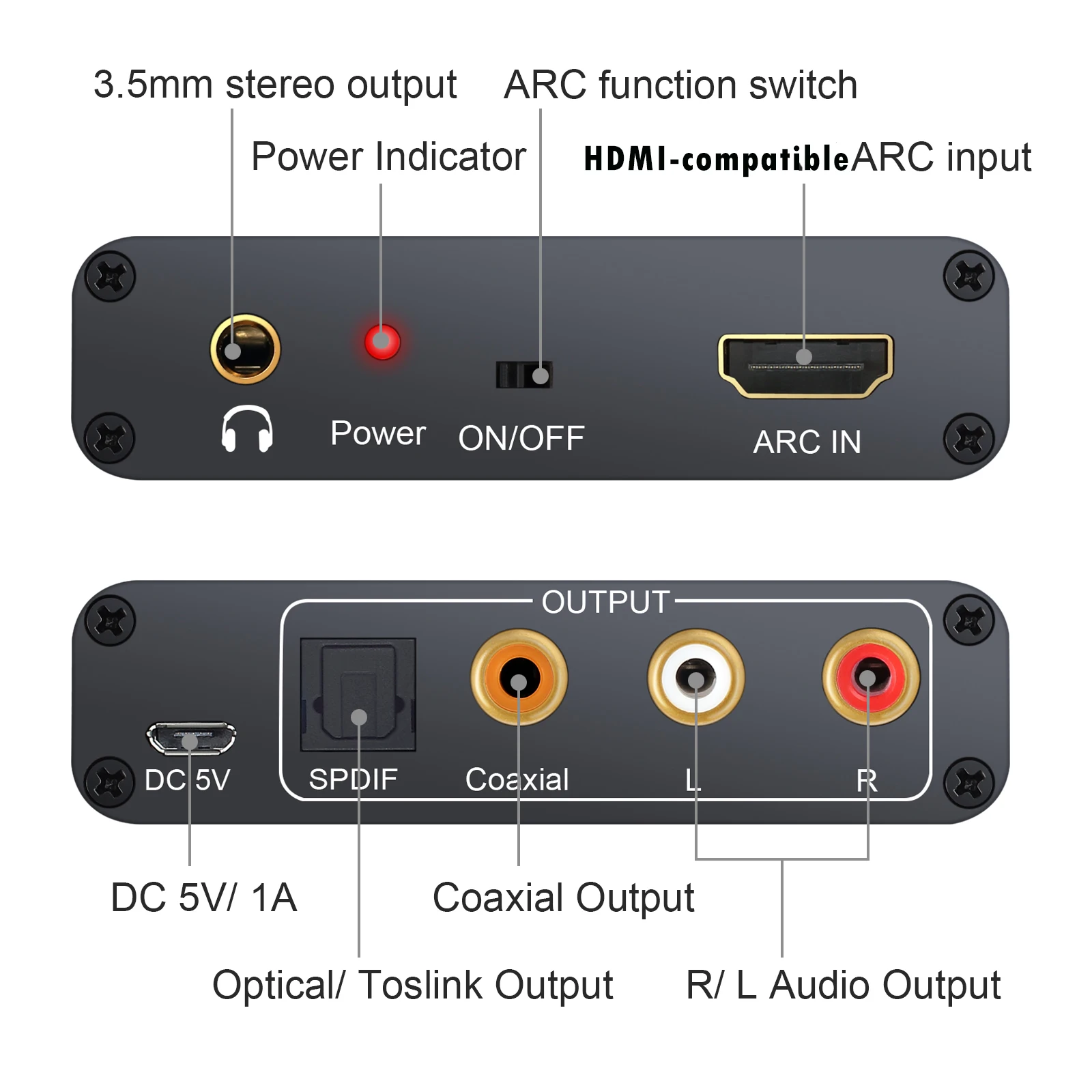В целом это качественная сборная коробка, качество звука четкое и чистое, но я не знаю, почему для HDMI arc он не работает от Sony TV XBR-85X90CH до Bose sound Touch 300 Sound bar? Таким образом, я должен использовать оптический аудиовыход с телевизора, чтобы он мог работать и использовать выход RCA для подачи аналогового сигнала в аудиомиксер для караоке. Информация об отслеживании доставки продавцом.