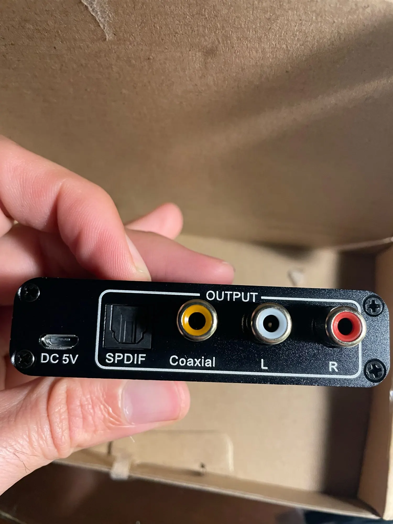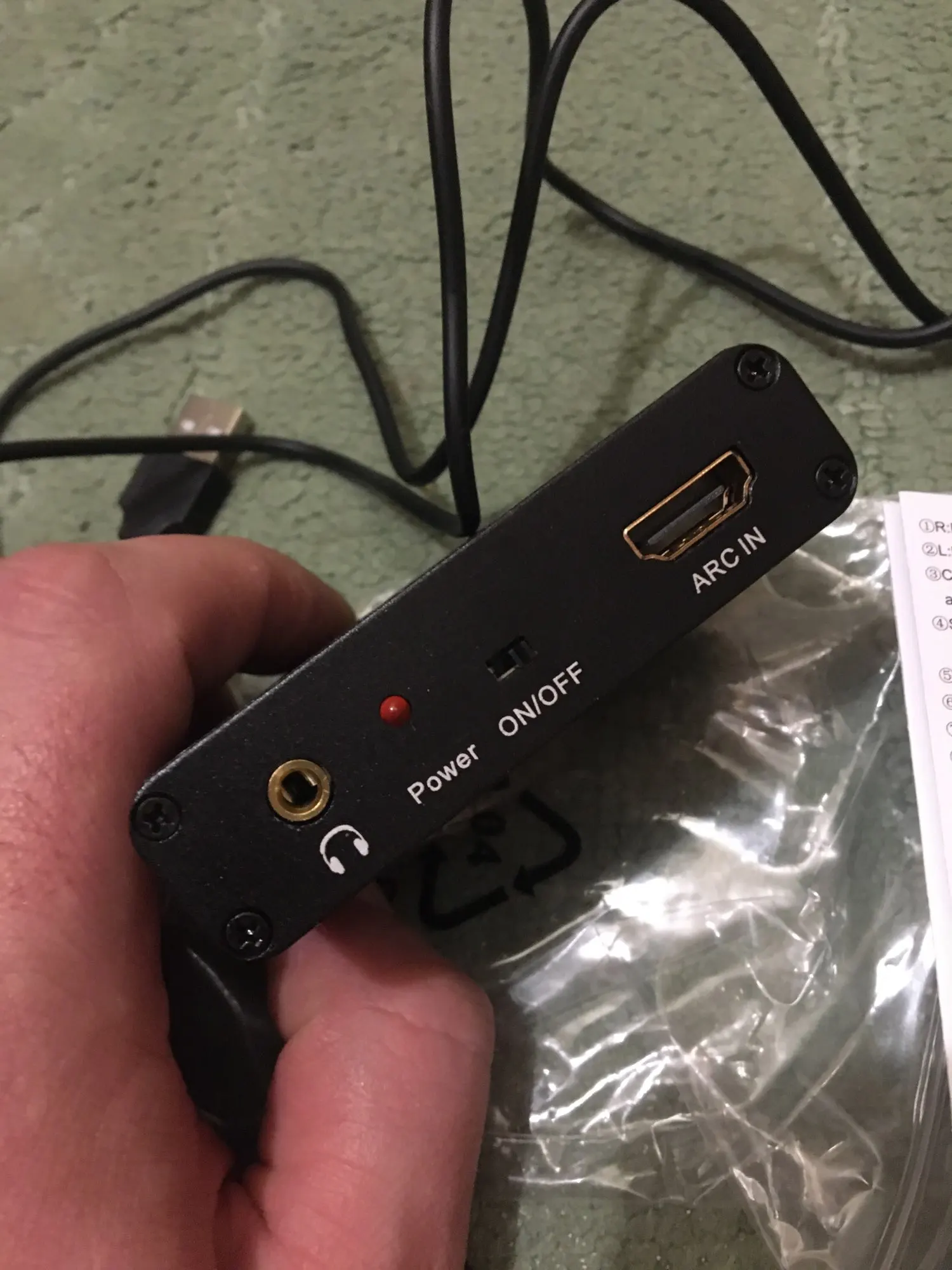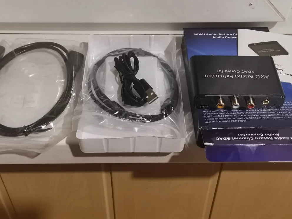 Устройство работает хорошо и без танцев с бубнами, Звук со смарт ТВ теперь идет через старый добрый аналоговый усилитель, в комплекте usb кабель питания, при подаче звука 5.1 нужно на источнике включать PCM и будет хорошее стерео, долгая отправка в следствие чего и долгая доставка, заказывал как подарок должно было прийти 01.12 пришло 04.12 пришлось оставить себе о чем не жалею.