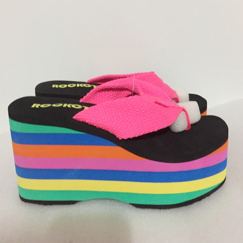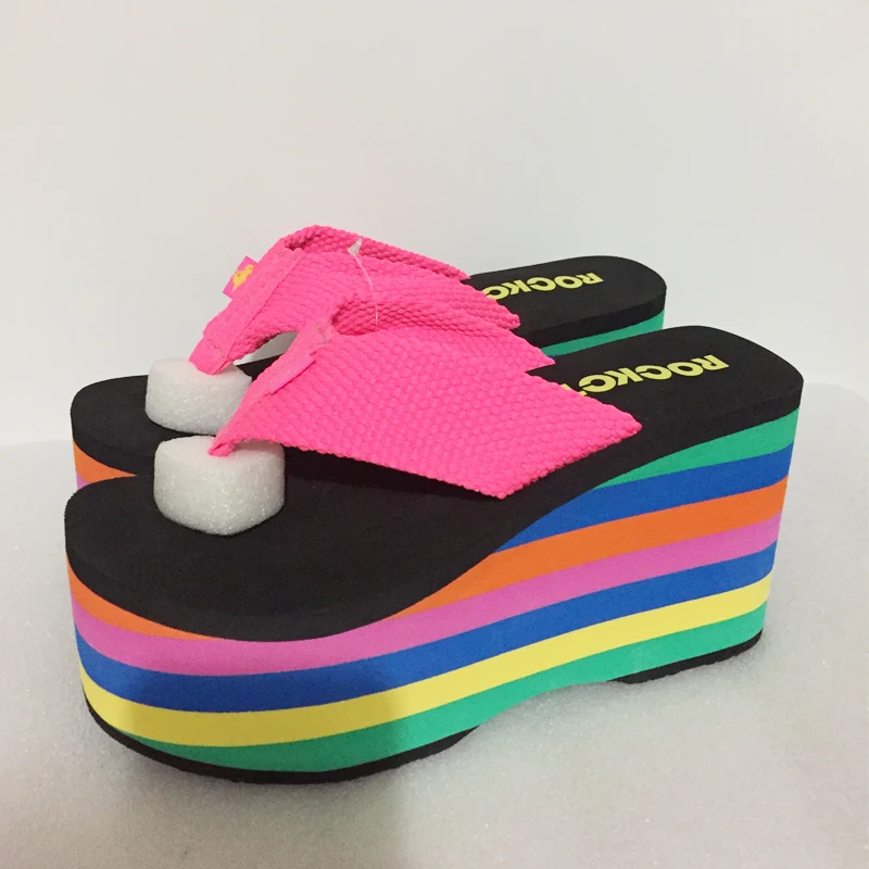 Женские пляжные шлепанцы, радужные сандалии на очень высоком каблук...