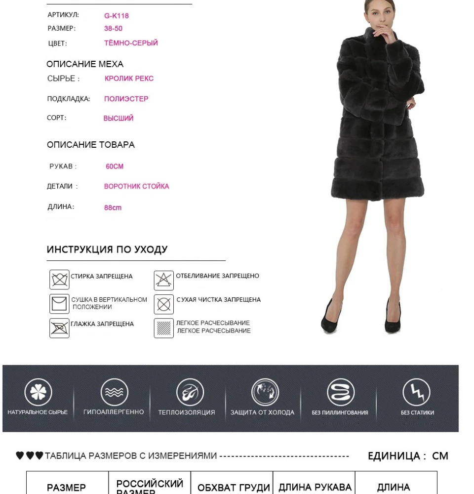 SARSALLYA меха кролика рекса Для женщин пальто Съемная пальто куртка теплая зимняя женская одежда натурального Меха женский пальто куртка