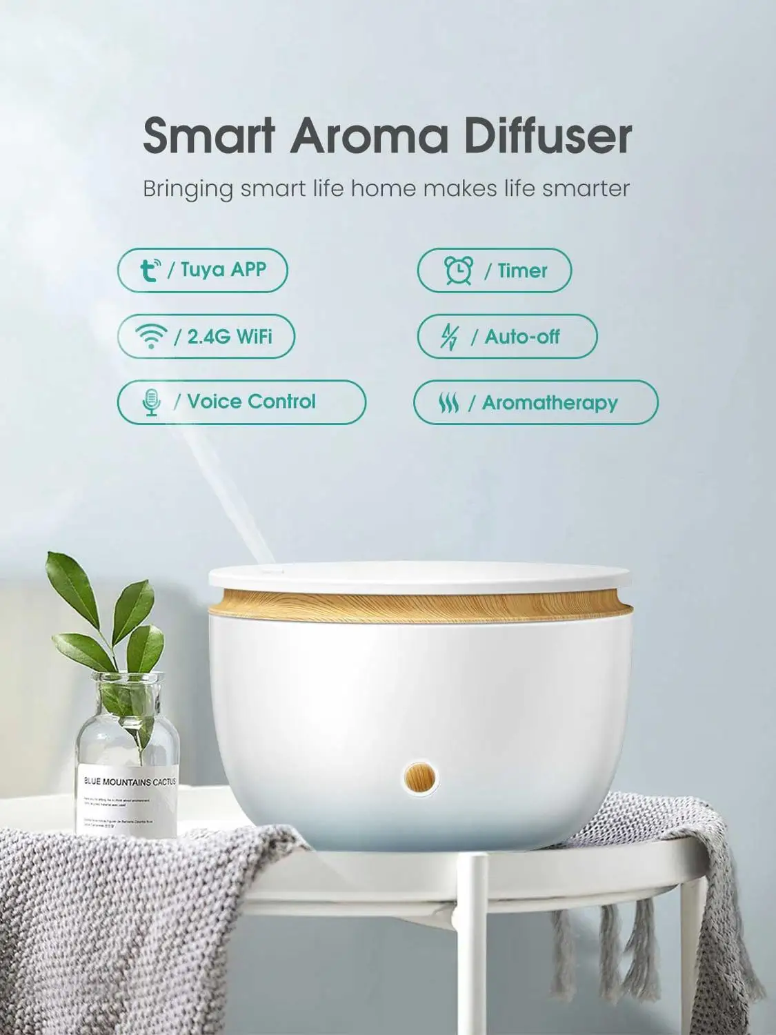 ✅Голосовое управление:Этот умный диффузор эфирного масла совместим с Google home / Amazon Echo Dot, вы можете управлять переключателем диффузора и светильник. Освободите руку и наслаждайтесь умной жизнью.