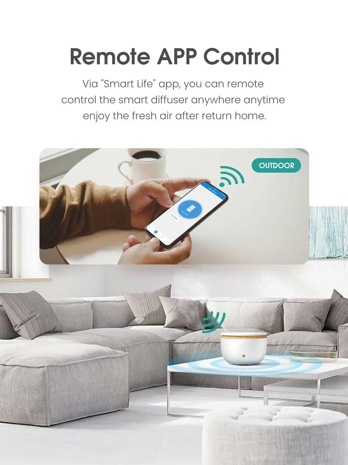 ✅Функция таймера:Настройте время открытия/закрытия электрического ароматического диффузора через приложение. В зависимости от ваших потребностей, разработайте план времени. Когда вода закончится, она автоматически прекратится.