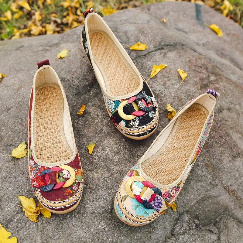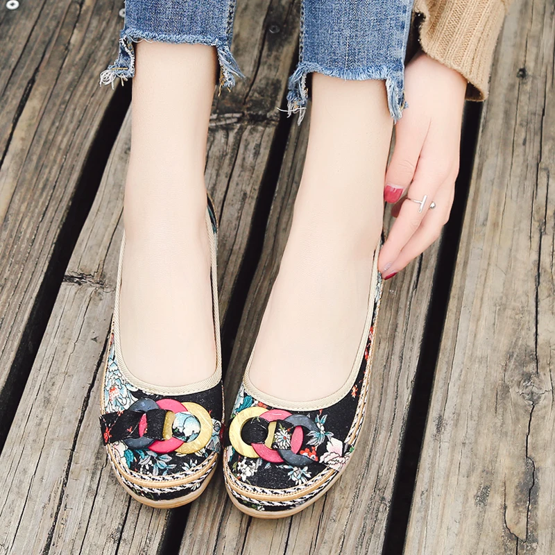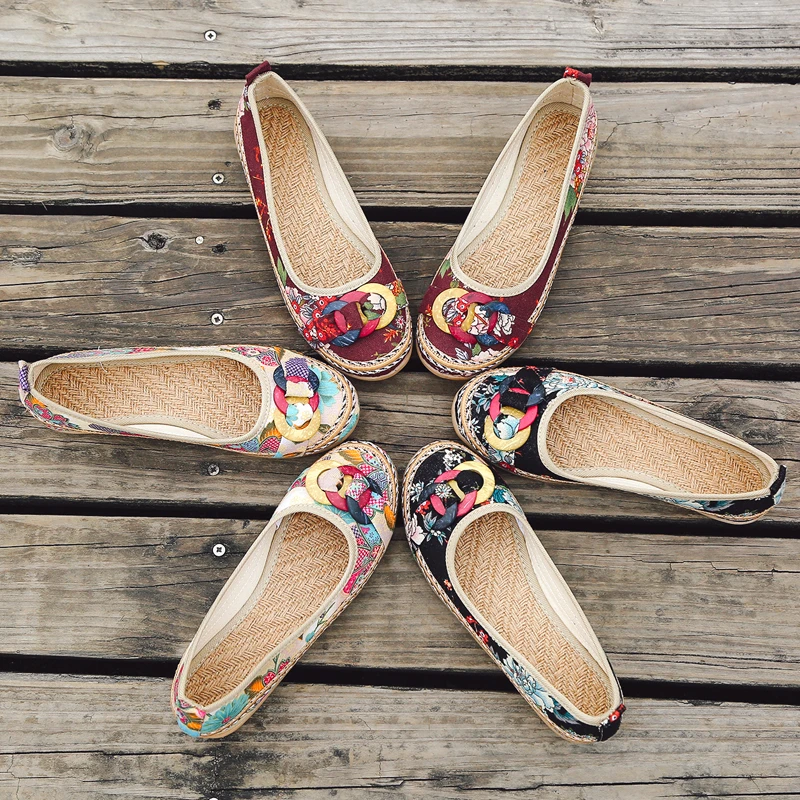 Женские парусиновые балетки AARDIMI, Повседневная Цветочный из хлопчатобумажной ткани обувь ручной работы на плоской подошве, обувь, мокасины-лодочки без застежки