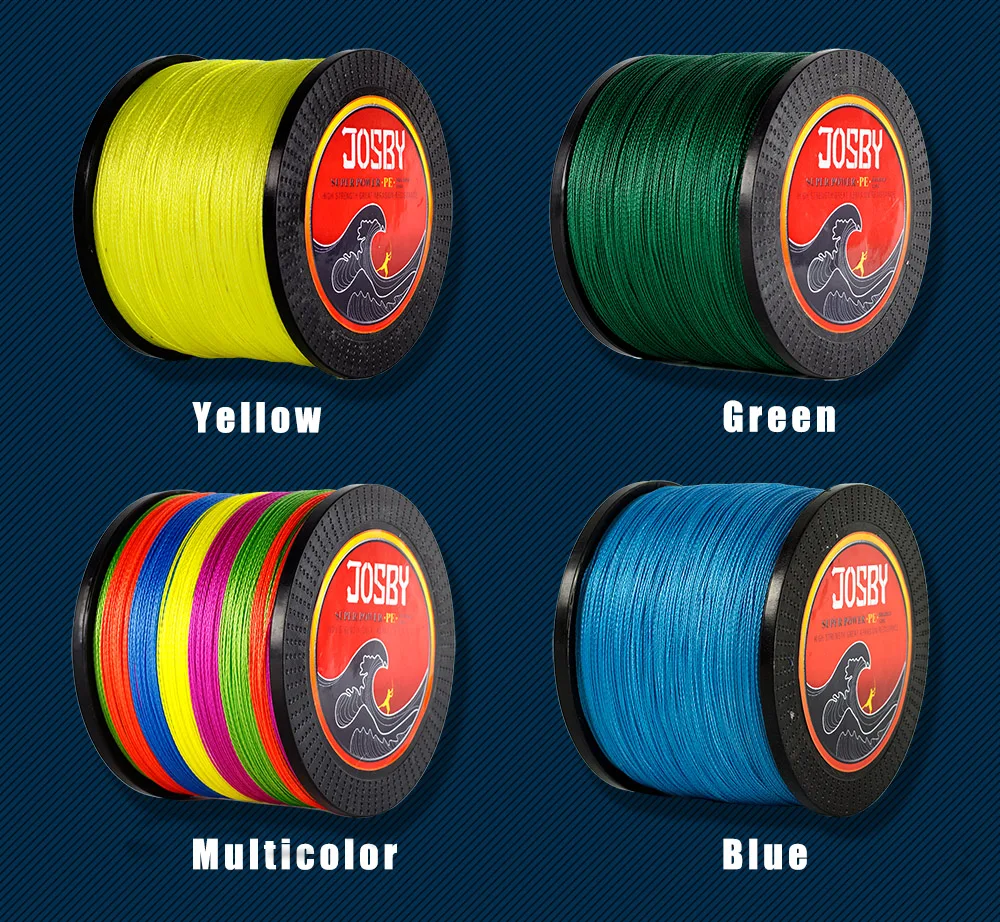 Леска рыболовная плетеная из ПЭ, 4 нити, леска 1000 м для ловли карпа 6 8 10 15 20 30 35 40 50 60 70 80 LB, плетеная нить JOSBY