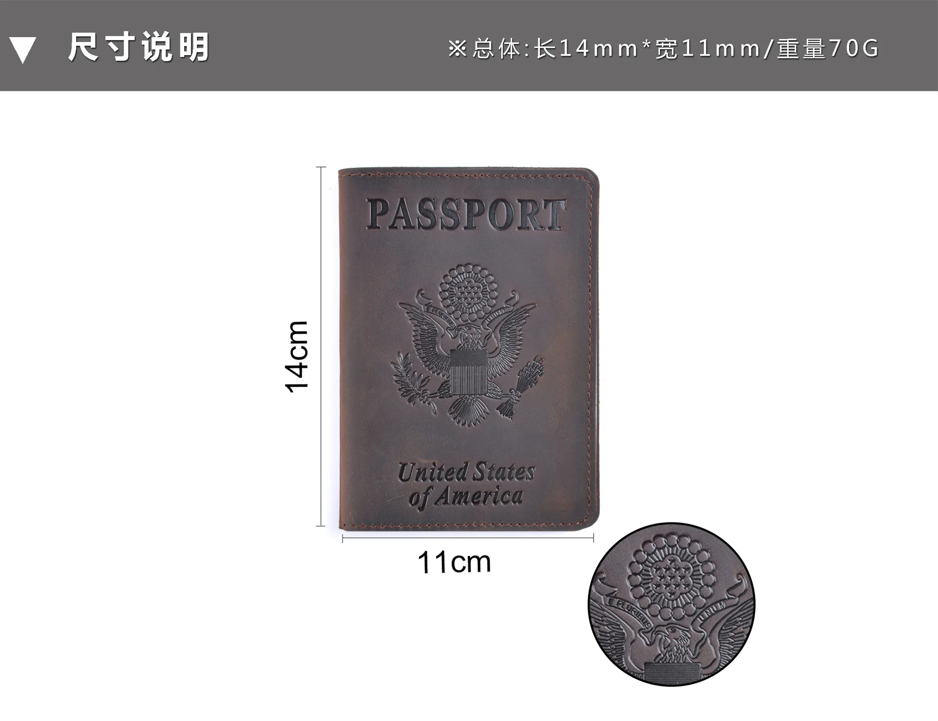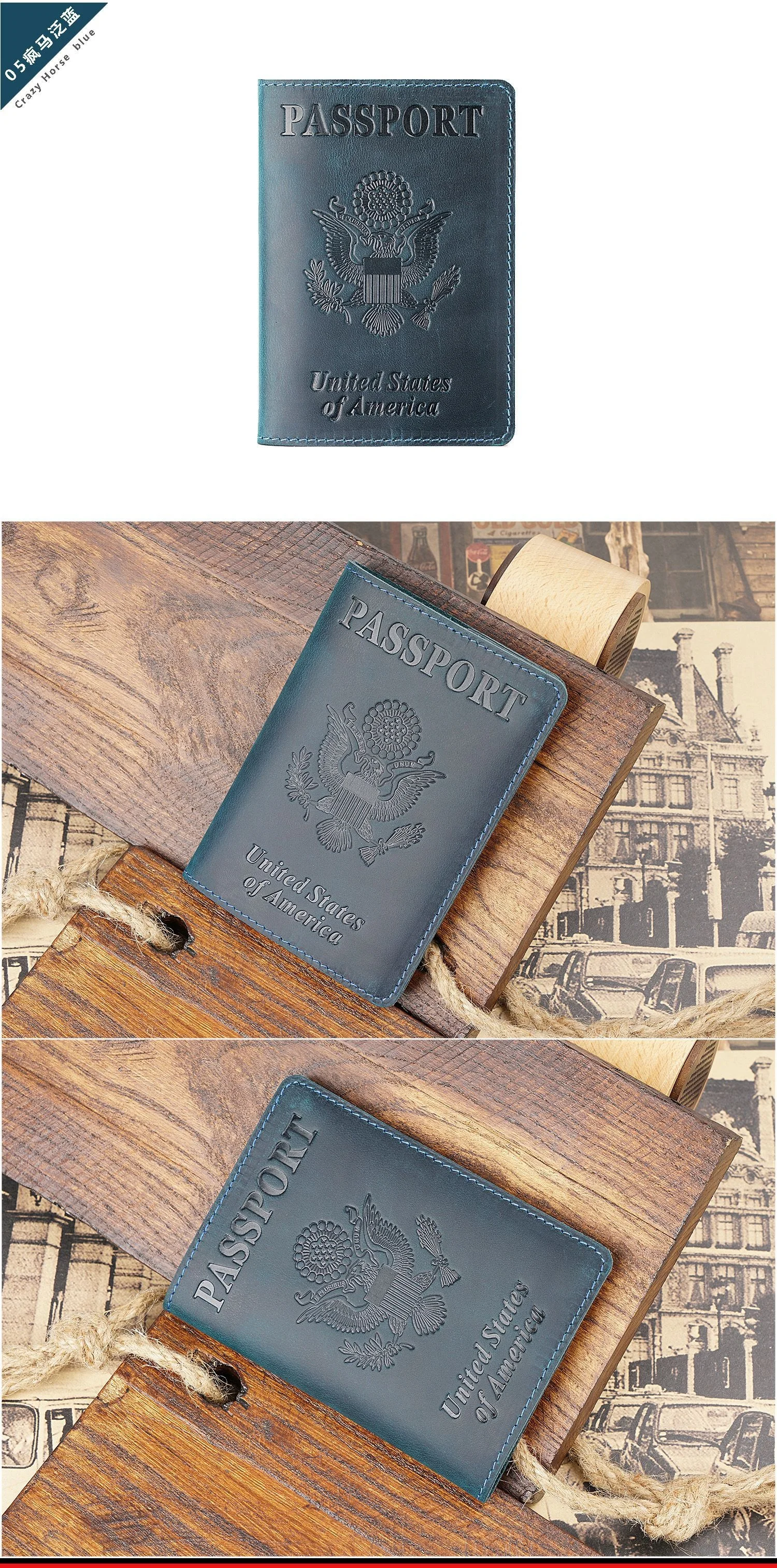 Обложка для паспорта из натуральной кожи для США, однотонная Обложка для кредитных карт, чехол унисекс, дорожный кошелек