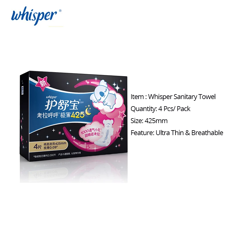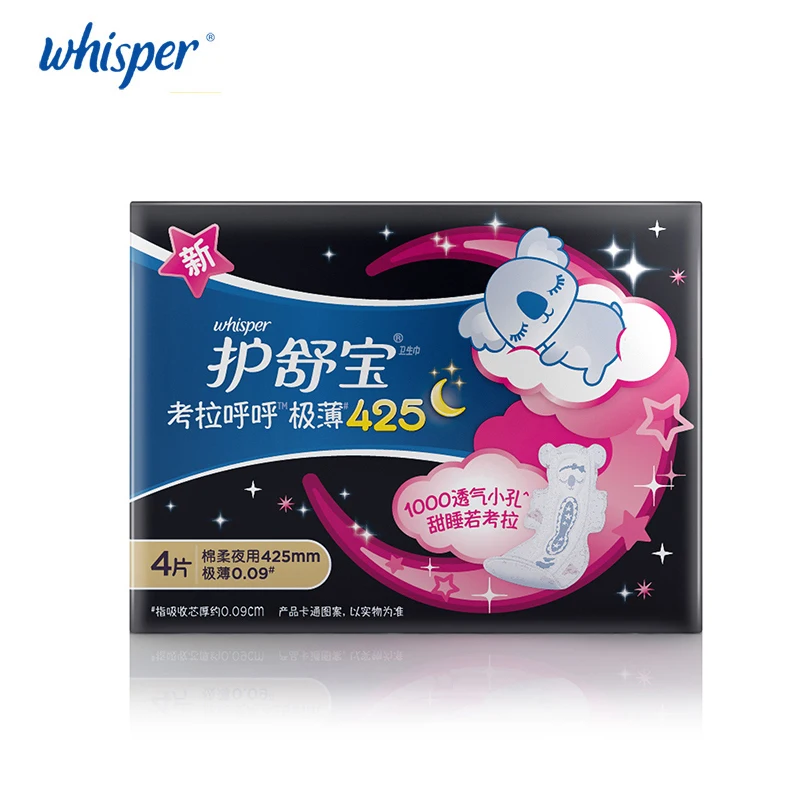 Нижнее белье и гигиеническая салфетка с крыльями Whisper Koala, ультратонкая, дышащая, для ночного использования