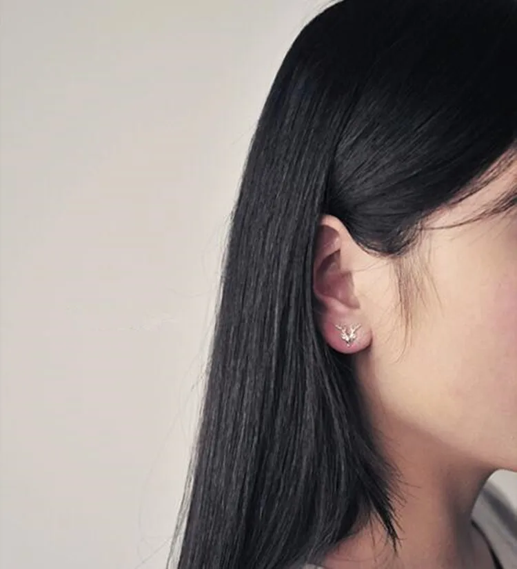 Серьги-гвоздики Uini-Tail женские, 925 пробы, серебряные, с оленем