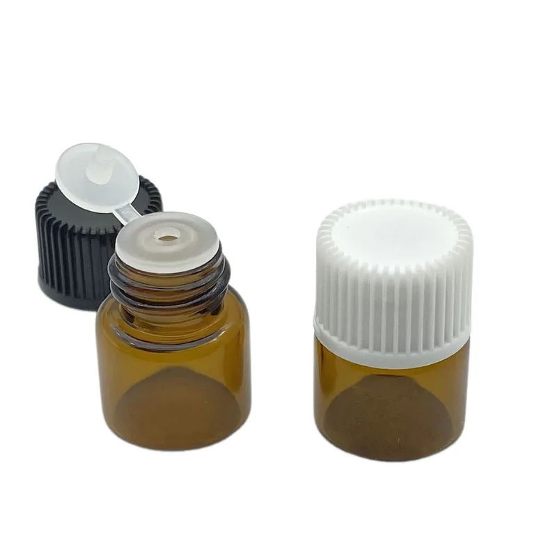 50 шт. 1 мл маленькая бутылочка из янтарного стекла с пластиковой крышкой с откидной заглушкой редуктор с винтовой крышкой мини пустые флаконы