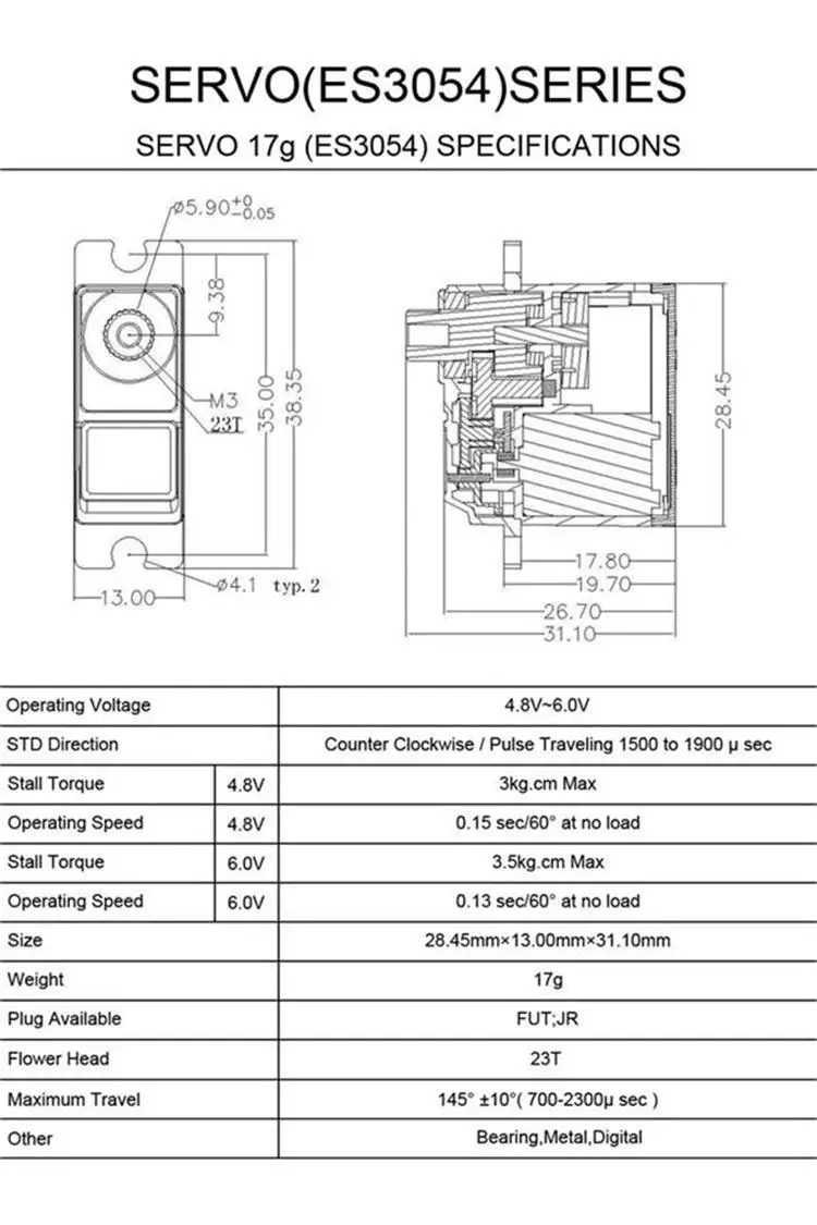 EMAX ES3054 17g 3,5 кг 0.13sec 23T Металлическая Шестерня цифровой ...
