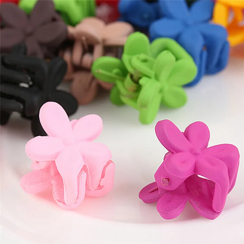 30 шт., случайный цвет, милые детские заколки для девочек, маленькие цветы, захват, 4 когти, пластмассовая заколка для волос, зажим, заколки, аксессуары для волос
