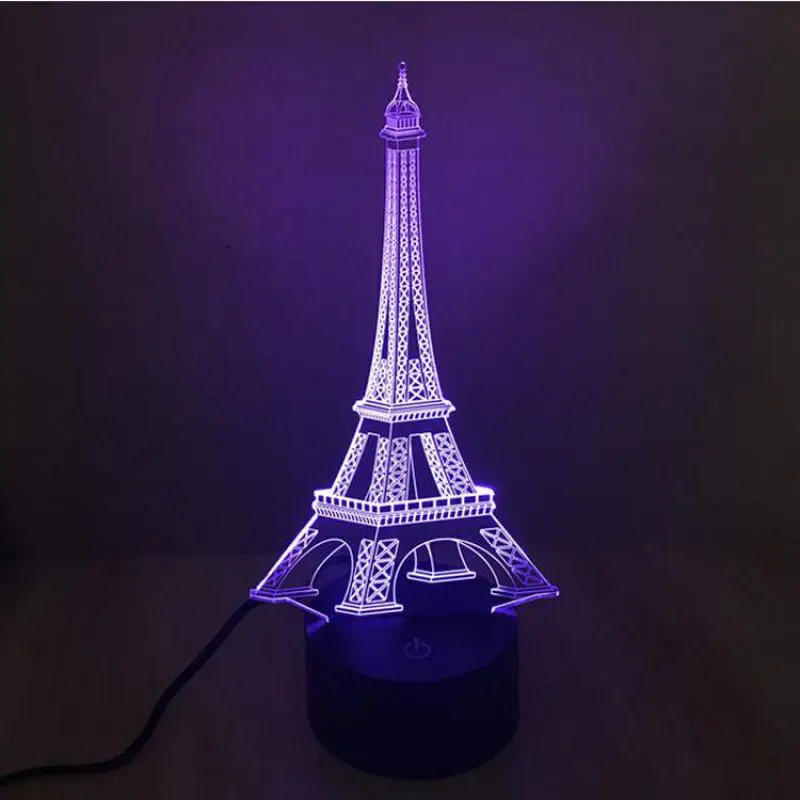 Оптовая продажа 3d Ночник светильник s креативный дом странная новая Эйфелева башня 3d светильник светильники Прекрасный 7 цветов Изменение 3D лампа
