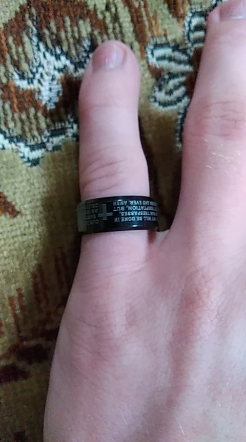 Кольцо пришло целым, с доставкой проблем не возникло. Надпись чёткая, мне нравится)) но я, видимо, перепутала размер — оно мне большое и наделось только на большой (но всё ещё большое). Не угадала с размером. В целом, довольна товаром