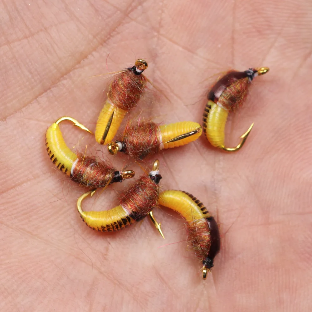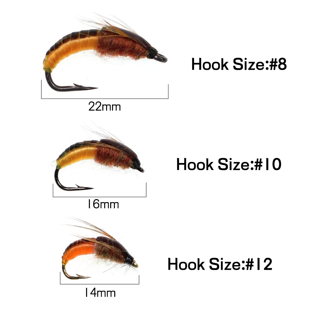 Bimoo 6 шт. #8 #10 #12 Реалистичная Нимфа Скад муха для ловли форели Нимфа искусственная приманка-насекомое приманка Caddis Нимфа рыболовная муха