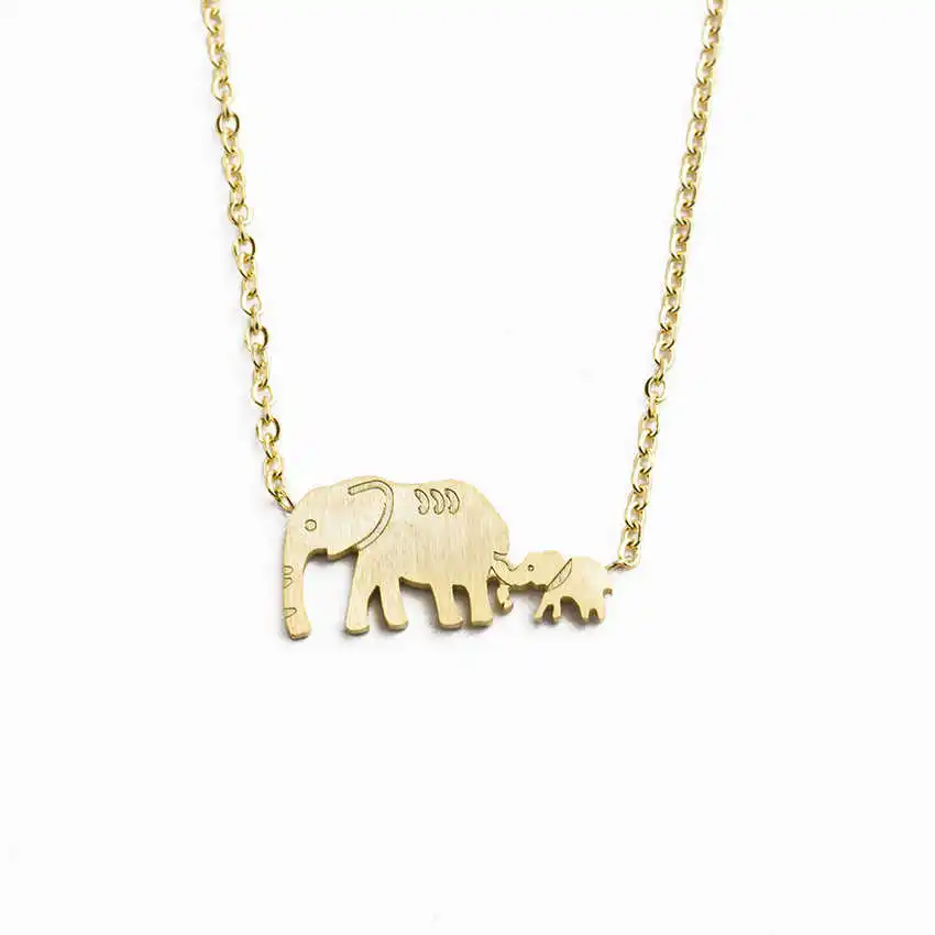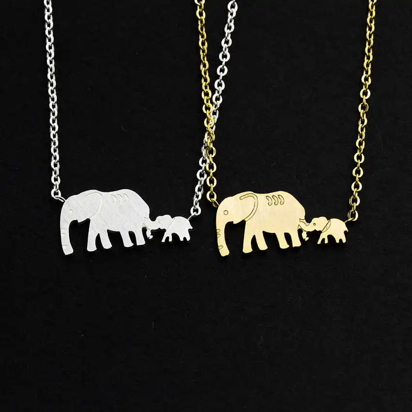Удача двойное колье с кулоном в форме слона из нержавеющей стали Золотая цепь животное отец мать ребенок слон кулон семья ювелирные изделия воротник