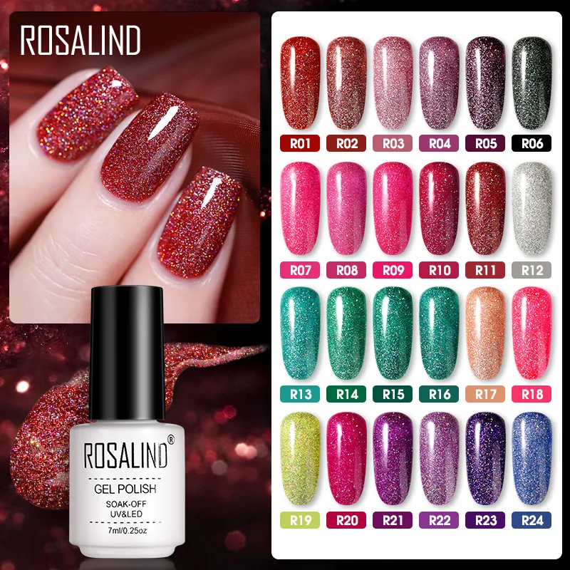 ROSALIND гель для ногтей 7 мл, блестящая радужная серия RCR01-20, стойкий гель-лак для ногтей, высушиваемый под УФ или светодиодами гель-лак для дизайна ногтей