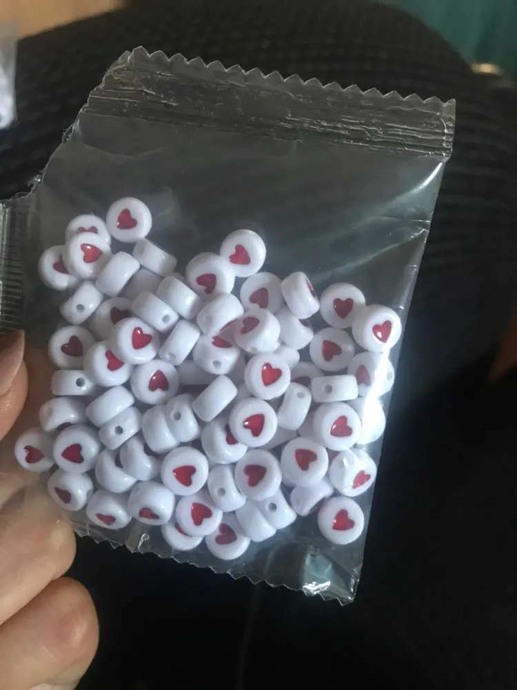 Шли ровно 2 месяца до Удмуртии. В подарок шла вот такая лента, спасибо. В целом неплохо, некоторые правда неровно прокрашены и в набор попался чужеземец, но так очень даже ничего. Довольно узкое отверстие.Для тех кто делает браслеты(!): с другой стороны бусинка такая как на последней картинке (т.е. перевёрнутая) а то мне в прошлый раз у другого продавца пришли сердечки которые были не вниз головой, и потом в браслетах на задней стороне они были перевёрнуты относительно букв.