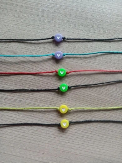 Товар пришел очень быстро, цвета такие же, как на фото. Они выглядят хорошо, только то, что некоторые имеют отверстие больше, чем другие, хотя я не думаю, что это большая проблема .. Продавец также дал рулон нити, чтобы сделать браслеты. Отлично!