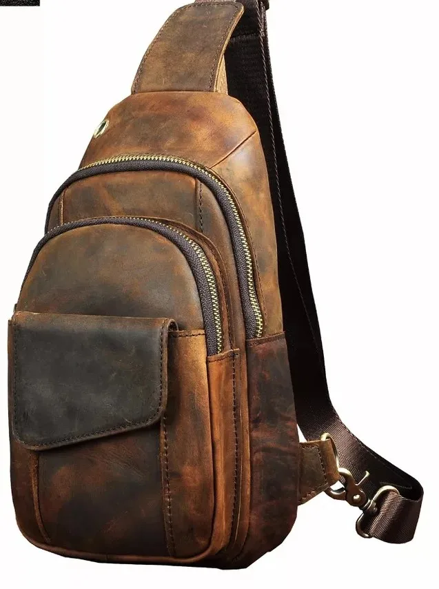 Сумка-слинг мужская, из кожи Крейзи Хорс, 8013-d