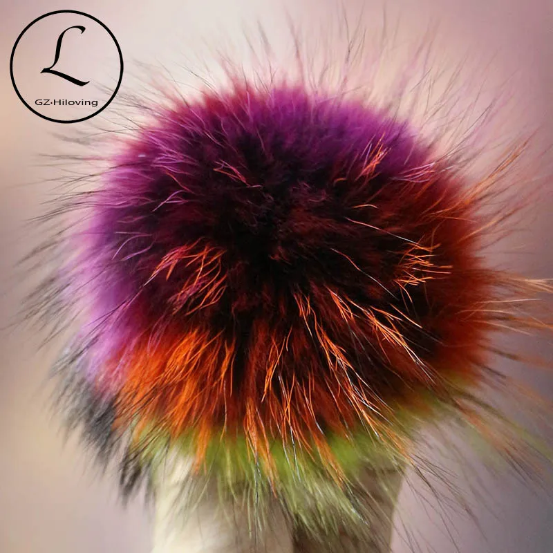 Пушистые Меховые помпоны из меха енота для вязаных шапок, 15-16 см, шапки, шарфы, помпоны из натурального меха с пуговицами