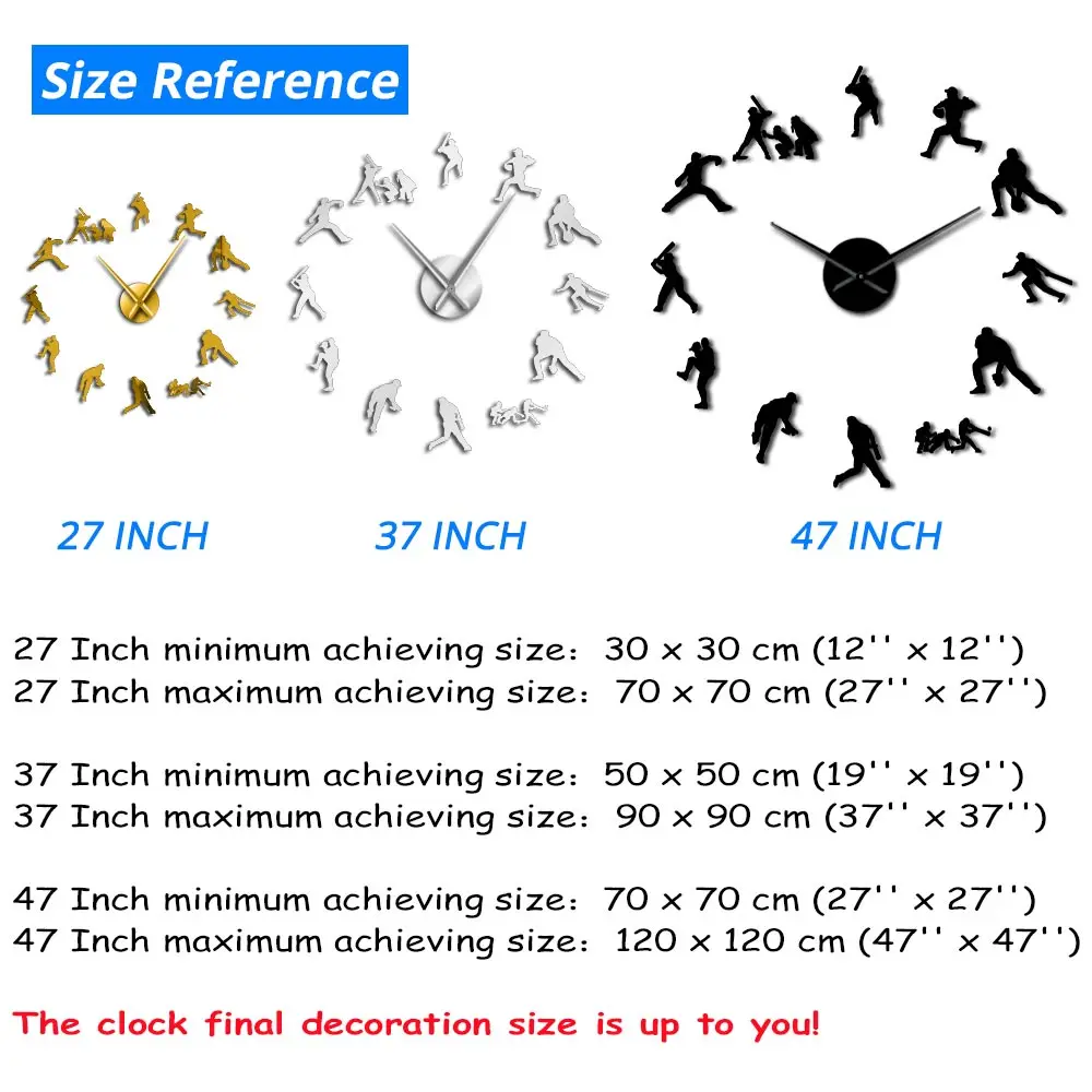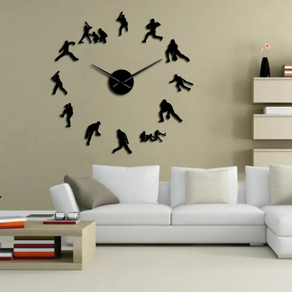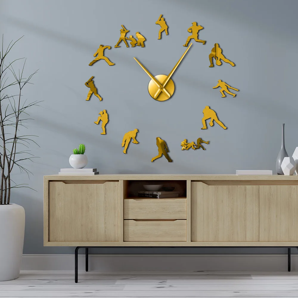 Декоративные Современные бейсбольные настенные часы, 3D бескаркасные гигантские часы DIY, часы с зеркальным эффектом, Софтбол, настенное искусство, Декор стен для гостиной