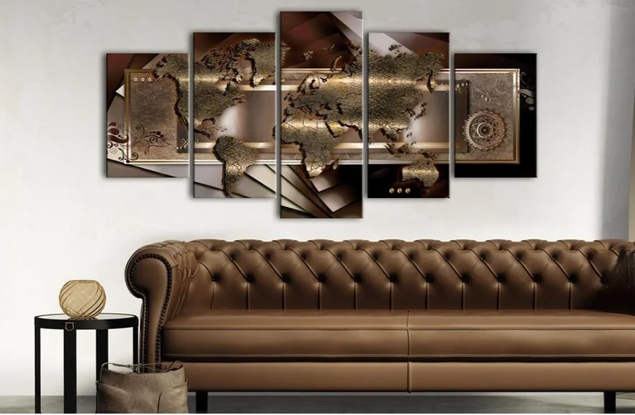 2019 абстрактная HD карта мира высокое качество 5 панелей Современная Настенная живопись для дома картина для отеля холст печать без рамки