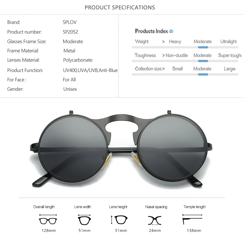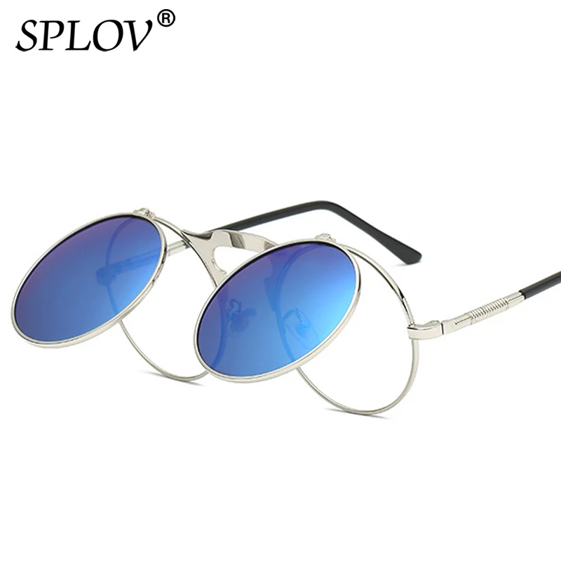 Солнцезащитные очки SPLOV с изогнутыми дужками UV400 для мужчин и женщин, винтажные солнцезащитные аксессуары в круглой металлической оправе в стиле стимпанк, ретро