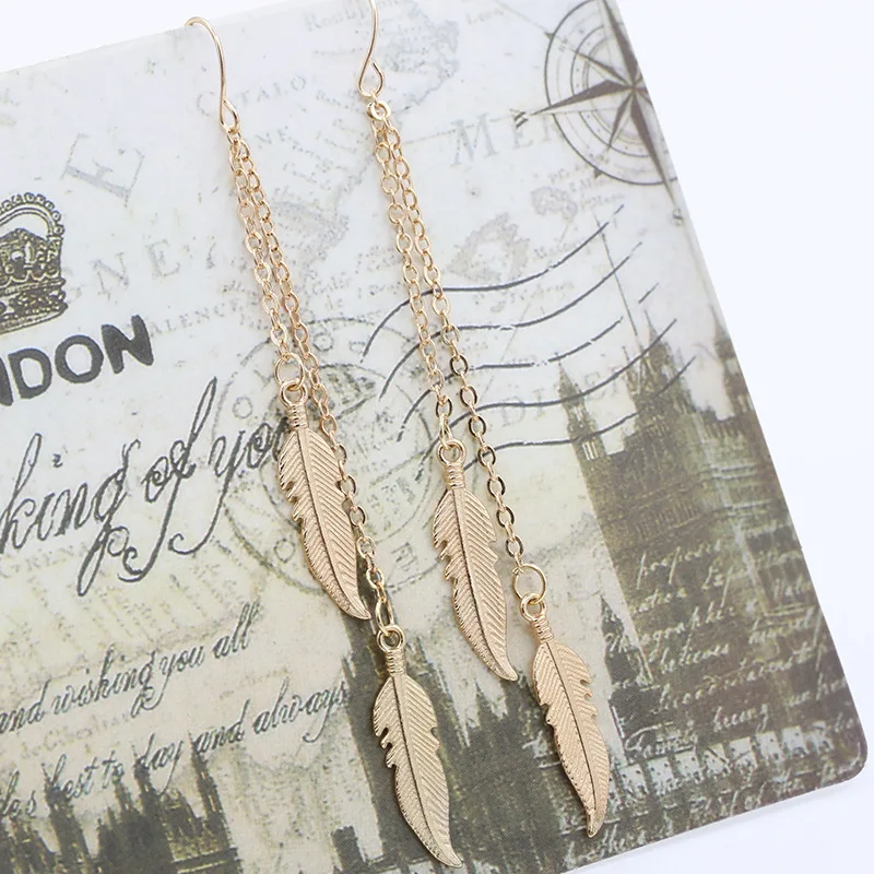 Женские длинные висячие серьги с кисточками, серьги-подвески с листьями и перьями, бижутерия, серьги