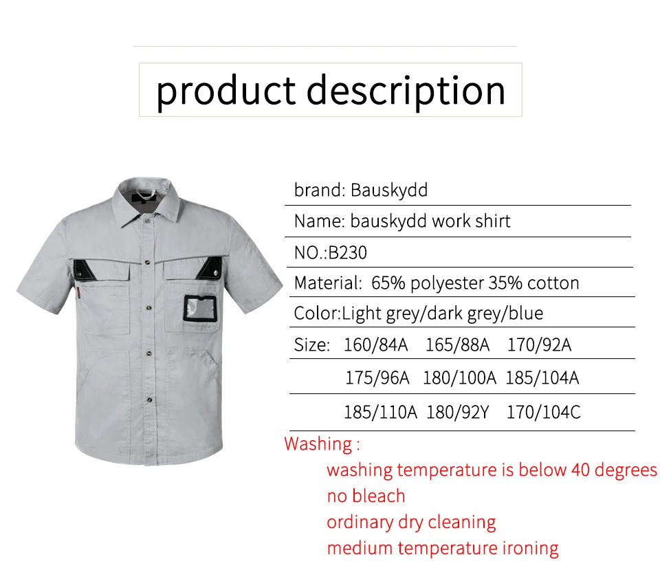 Рабочая одежда для мужчин, рабочая одежда, рабочая рубашка с коротк...