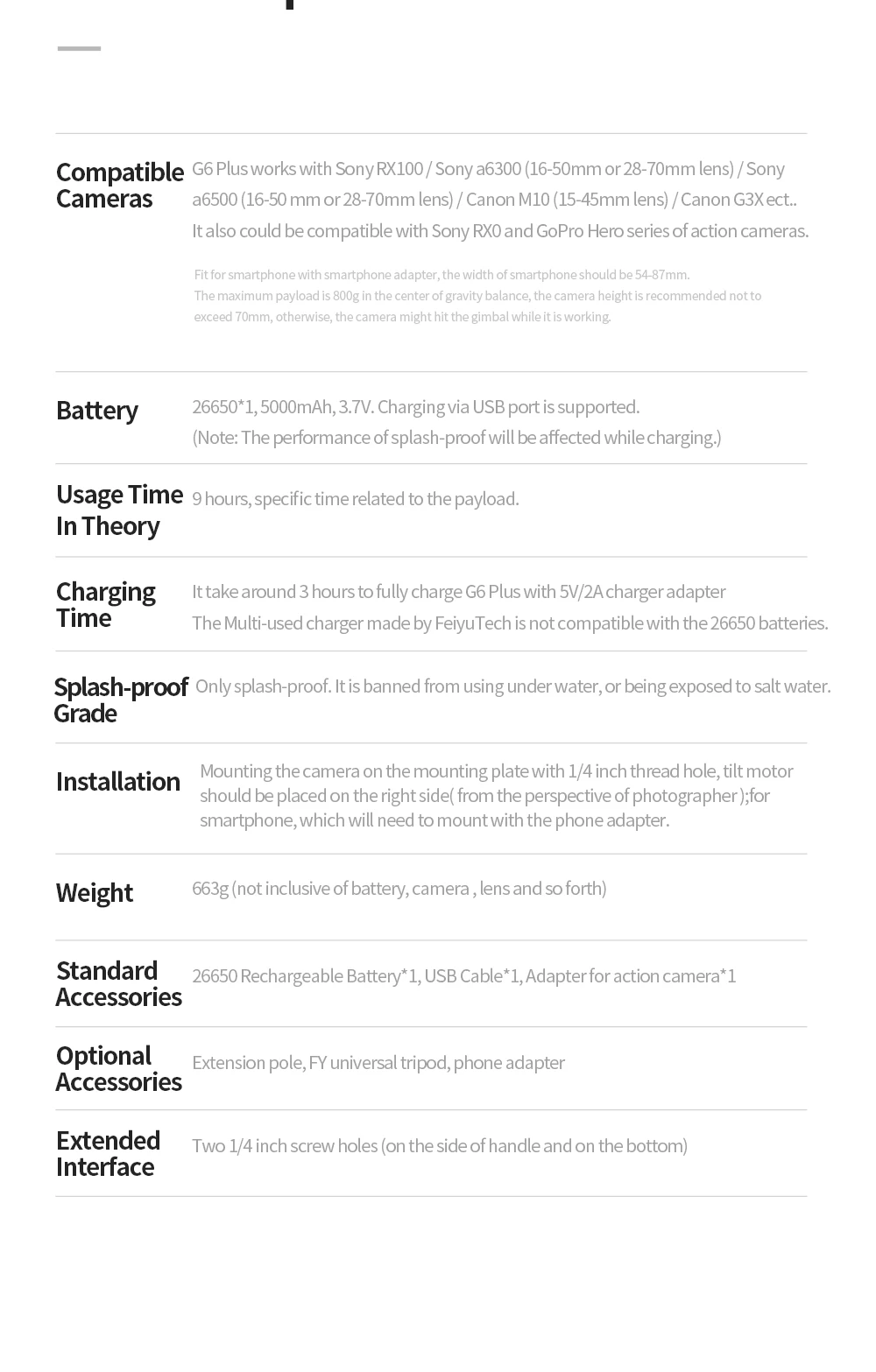 3-осевой карданный стабилизатор FeiyuTech G6 Plus для смартфонов Gopro Hero 7 6 5 Sony RX0 Samsung s8 800g с полезной нагрузкой Feiyu G6P