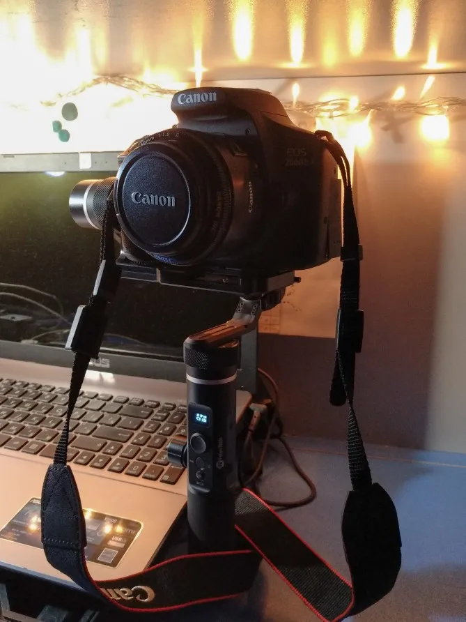 Очень боялся, что посылка мне не приедет, как и предыдущему русскому покупателю, из-за службы доставки IML, но к моему удивлению, посылка приехала даже без единой смяточки, курьером. Покупатель из Америки написал, что стабилизатор не удержал его Sony A7iii, полазил в инете и увидел, что его камера весит 800г, а мой Canon EOS 2000 весит 400г, подумал, ну ладно, проблем возникнуть не должно, но увы, стабилизатор не смог удержать камеру с китовым 18-55mm, невозможно уравновесить, а портретный 50mm удержал, но видно, что стабилизатору тяжело держать на себе 500г, хоть и написано, что он способен на 800г. Были проблемы, когда стабилизатор очень сильно вибрировал, из-за этого очень быстро садилась батарейка, помогает калибровка мотора, в приложении. Очень грустно, что к стабилизатору можно подключить только одну модель Canon. В принципе, стабилизатором доволен, за 8к₽ большего не ждал.