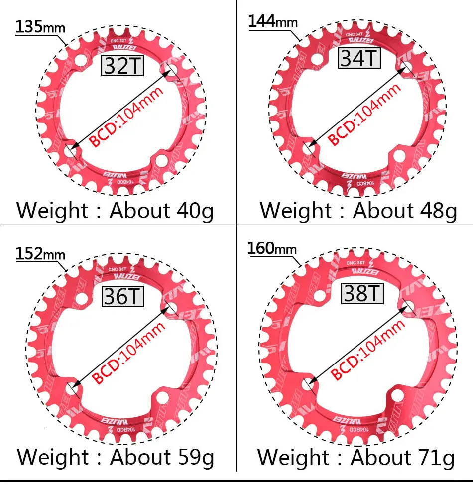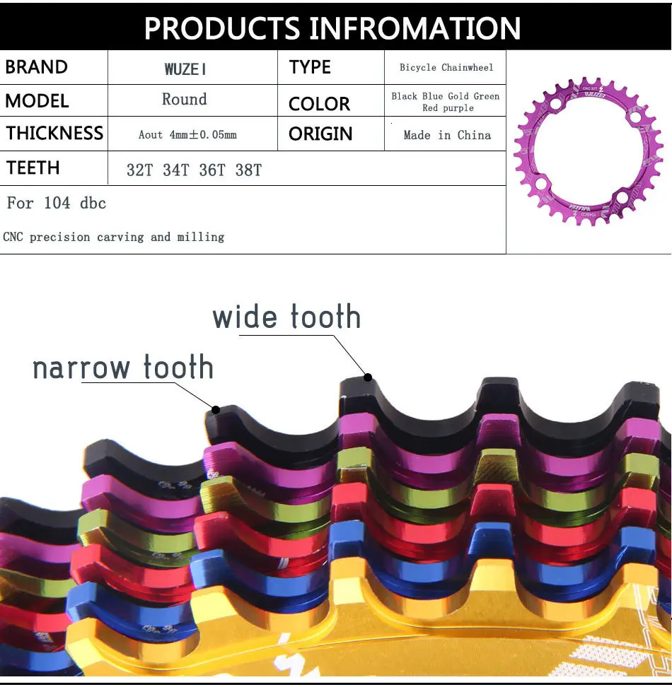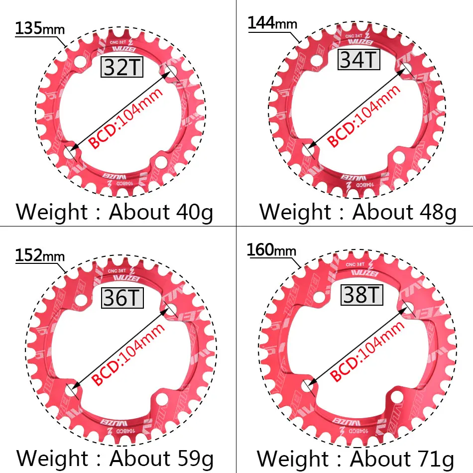 Цепная Звездочка wugnai односкоростная, цепь с узкими и широкими зубьями 104BCD, круглая, 323436384042T, для горного велосипеда, 1*91011s
