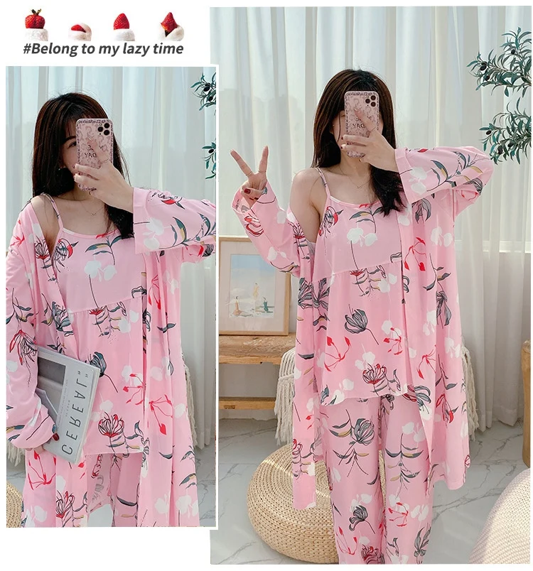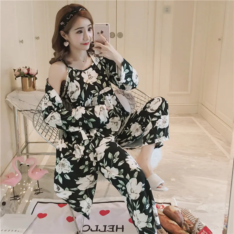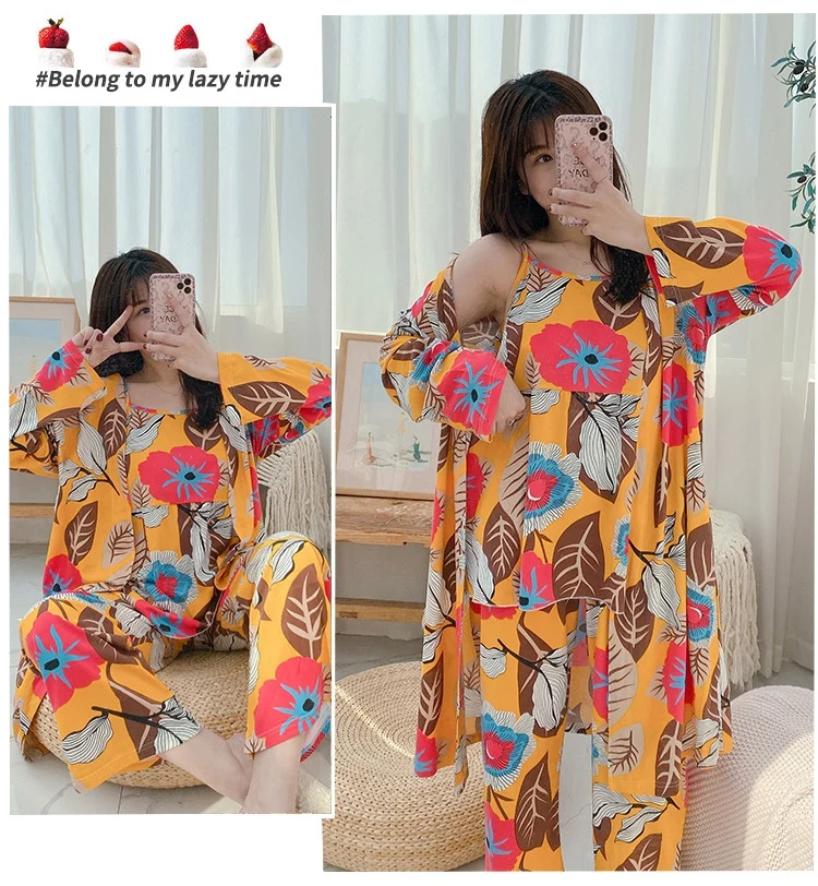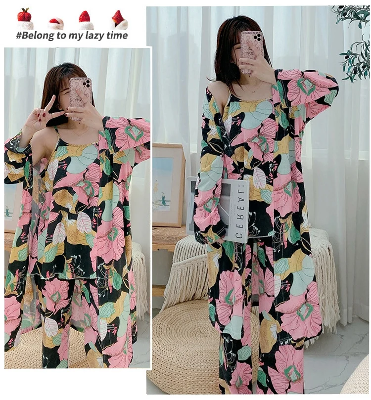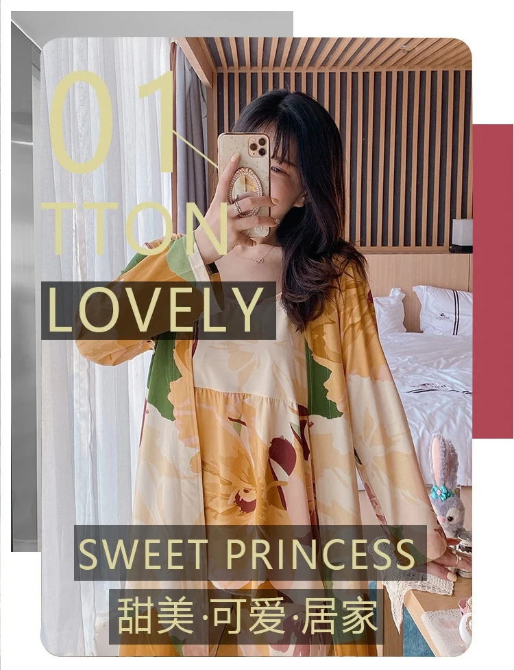 Халат женский, с длинным рукавом и принтом, осень 2021 г., халат, домашняя пижама