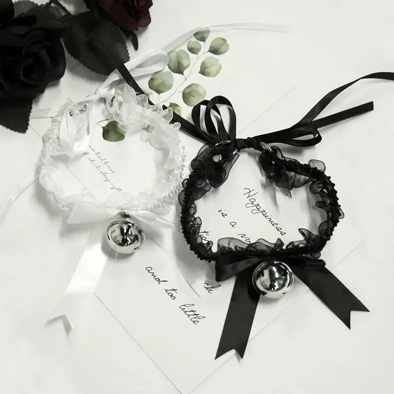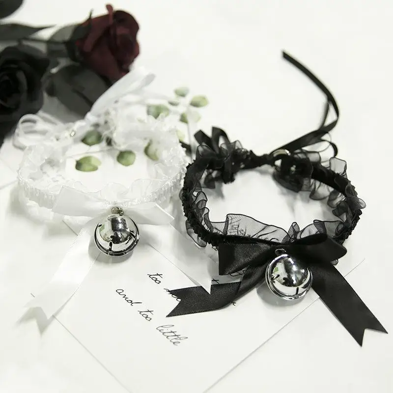 Модный кружевной чокер в стиле Лолиты с цветочным принтом и колокольчиком, интимные аксессуары ручной работы, ожерелье с бантом и воротником, Шейное ожерелье