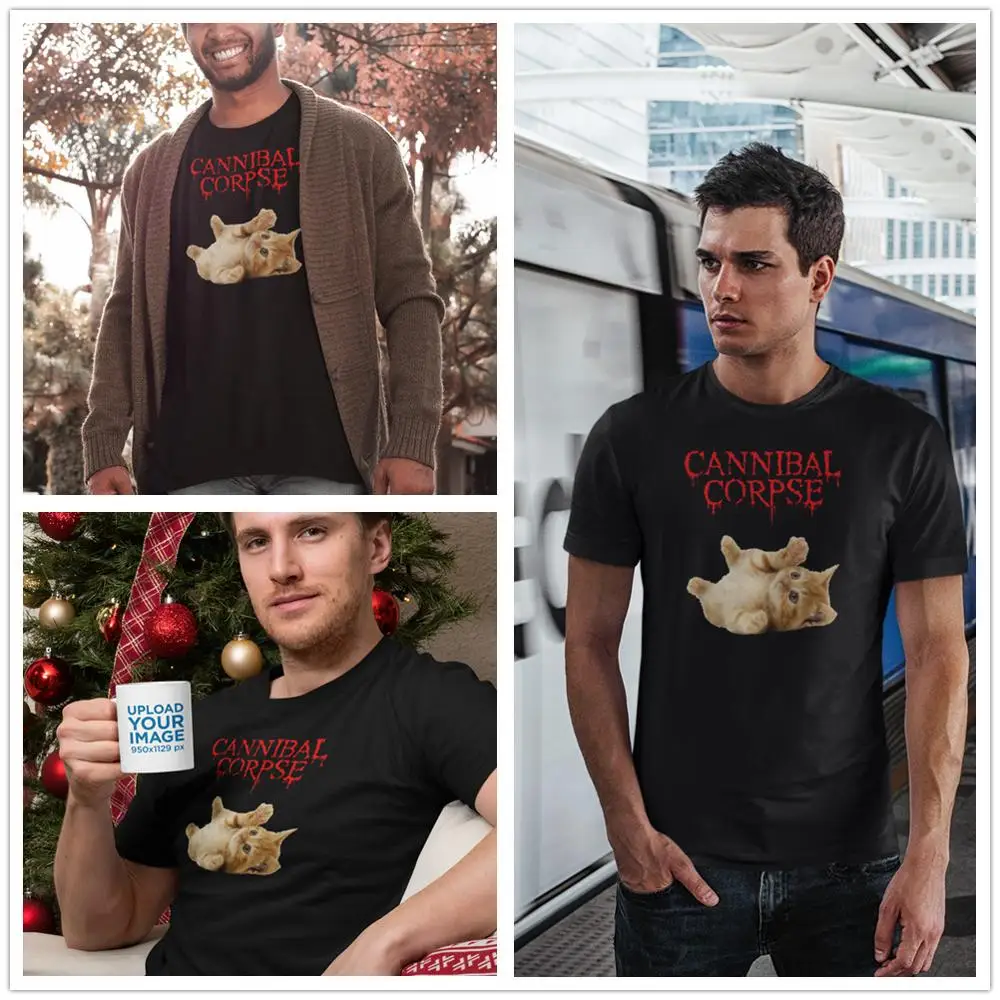 Cannibal Мужская футболка с принтом кошки, графические футболки, му...