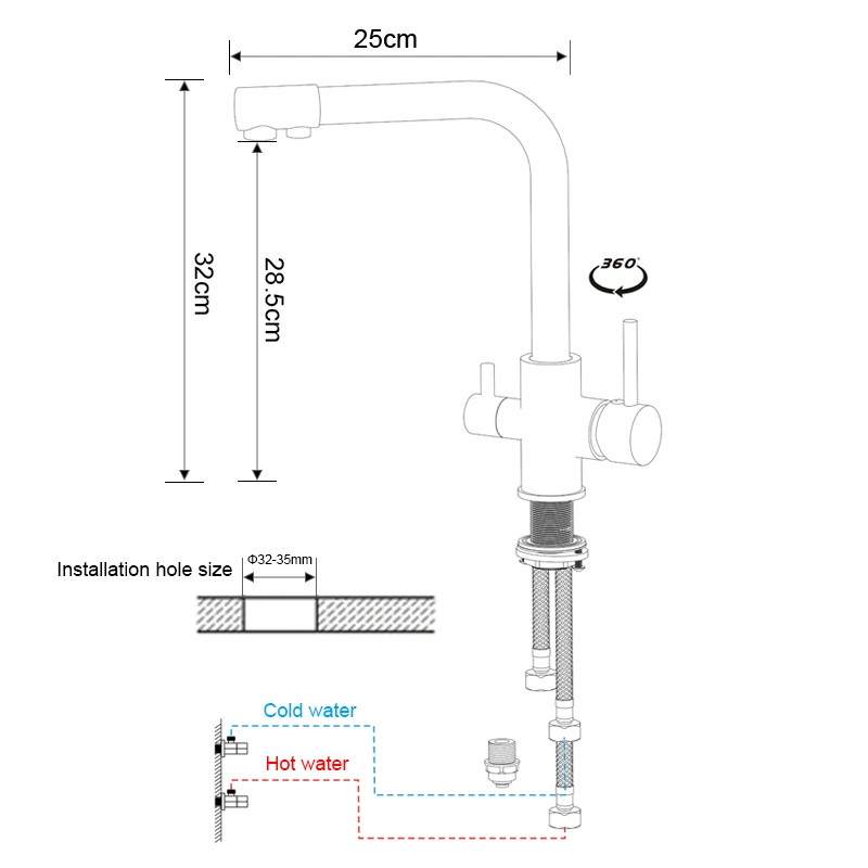 Кран для очистки воды ROVATE, кухонный смеситель с фильтрованной водой, 3 канала, для холодной и горячей воды