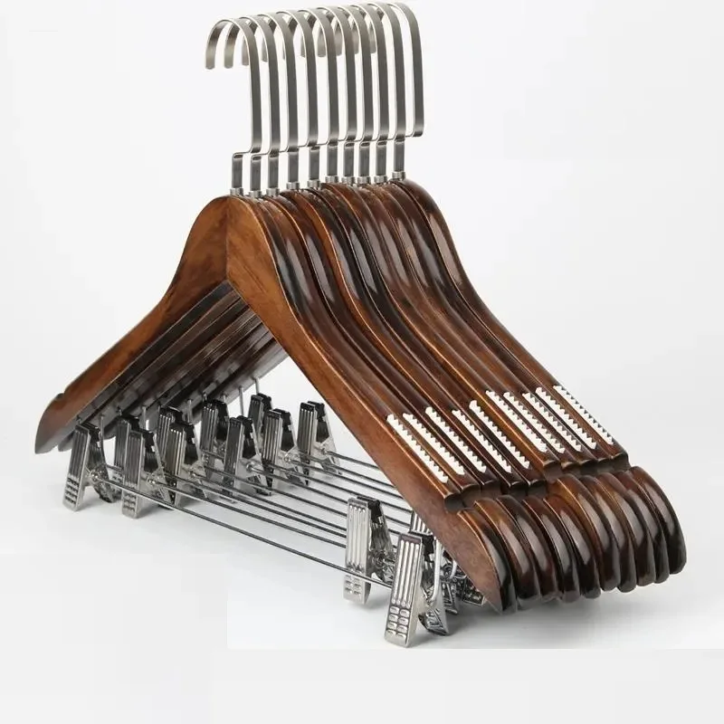 10 шт.компл. взрослые сверхширокие деревянные и металлические крючки, деревянные вешалки с насечками, нескользящий металлический крючок для одежды W2760